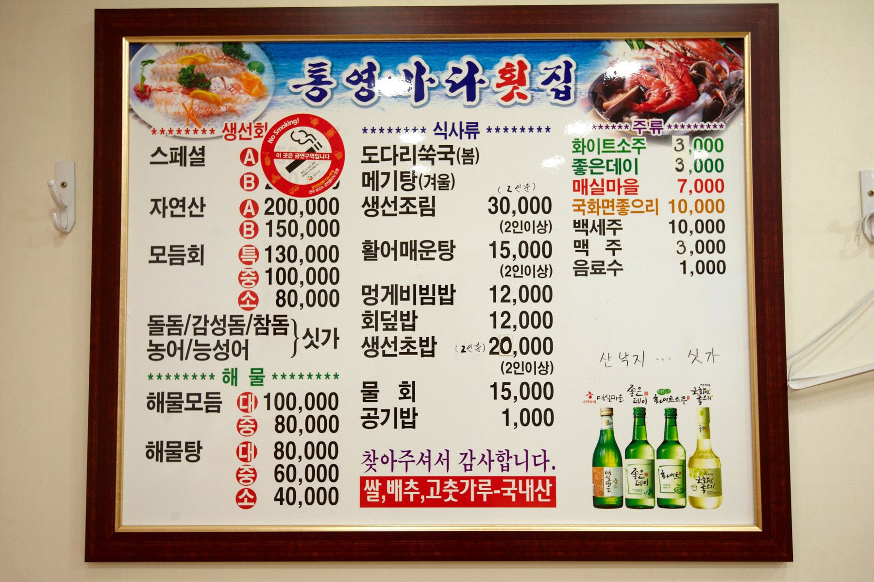 식당 외부는 바닷가에서 흔히 볼 수 있는 수많은 횟집 중 하나일지모르지만,