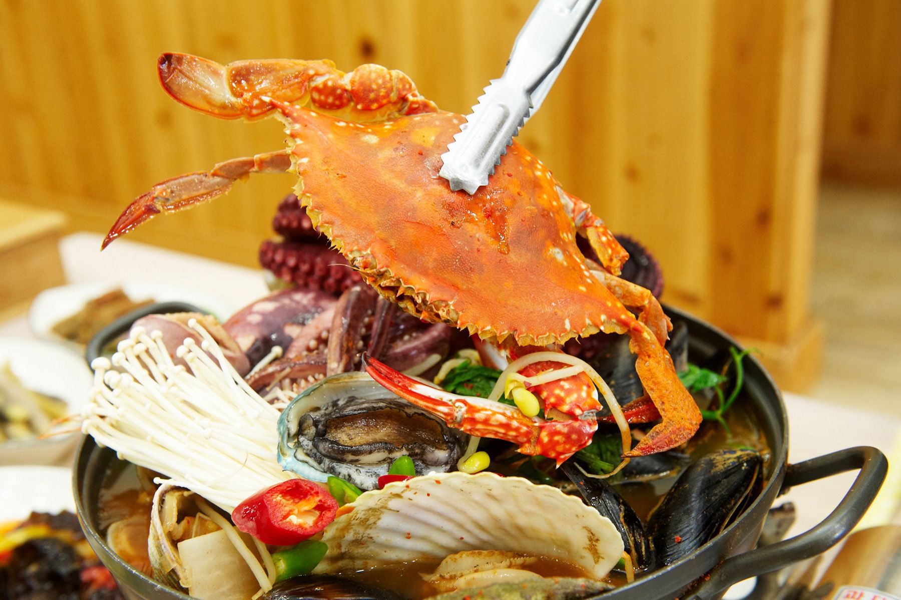 해물탕에 들어가는 해물들은 통!으로 냄비가 넘칠정도로 가득 담겨져 나오며