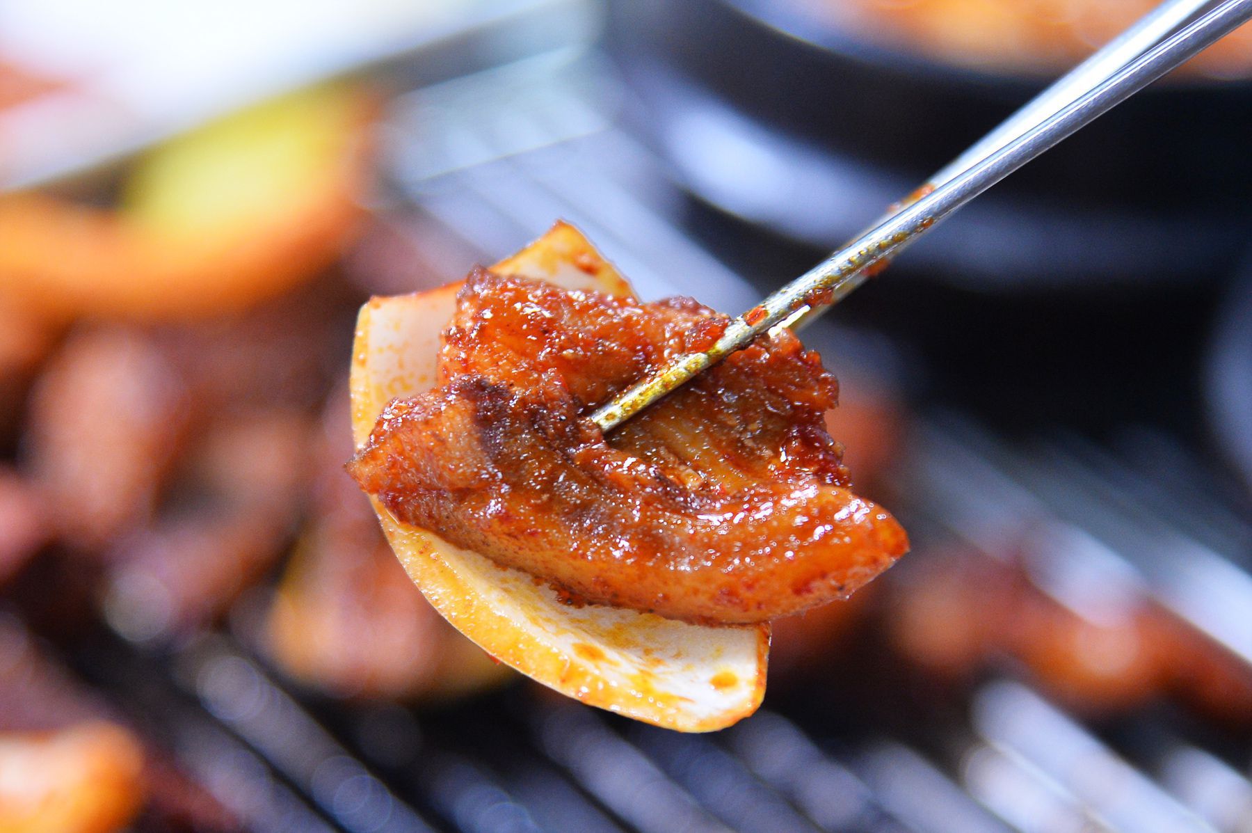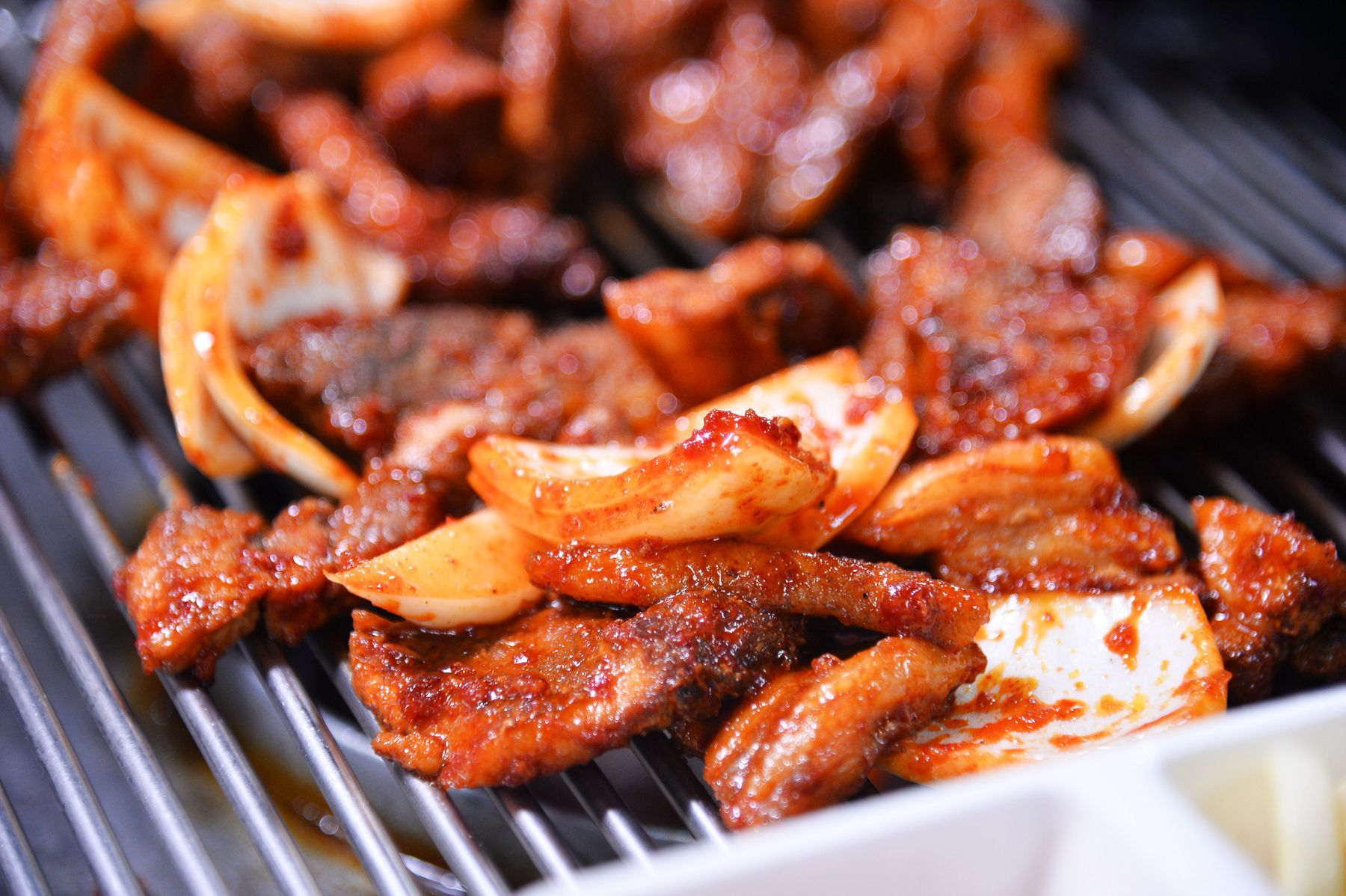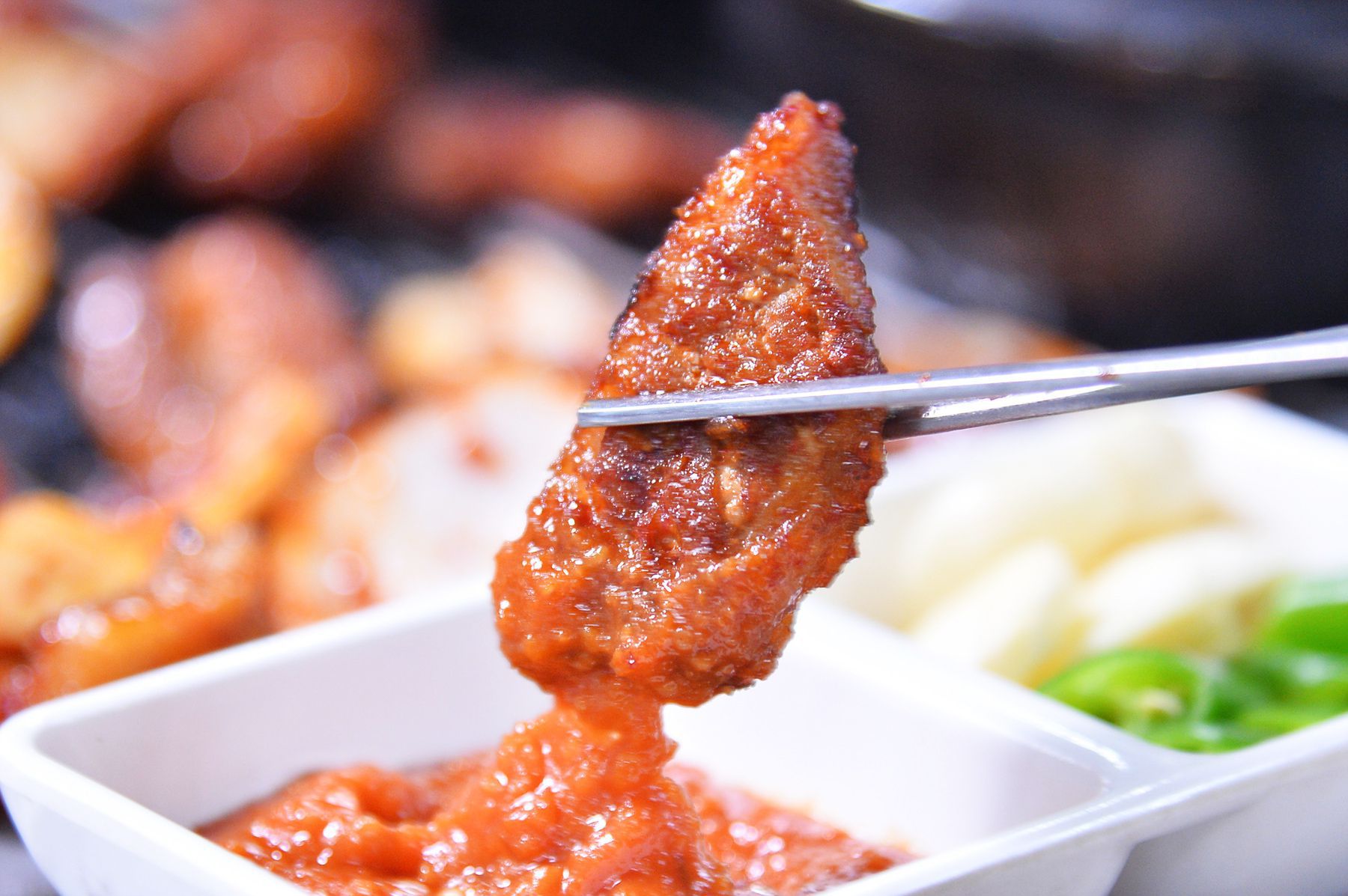 은은한 연탄불에서 익히면 더욱 맛있어지는 매운갈비입니다.