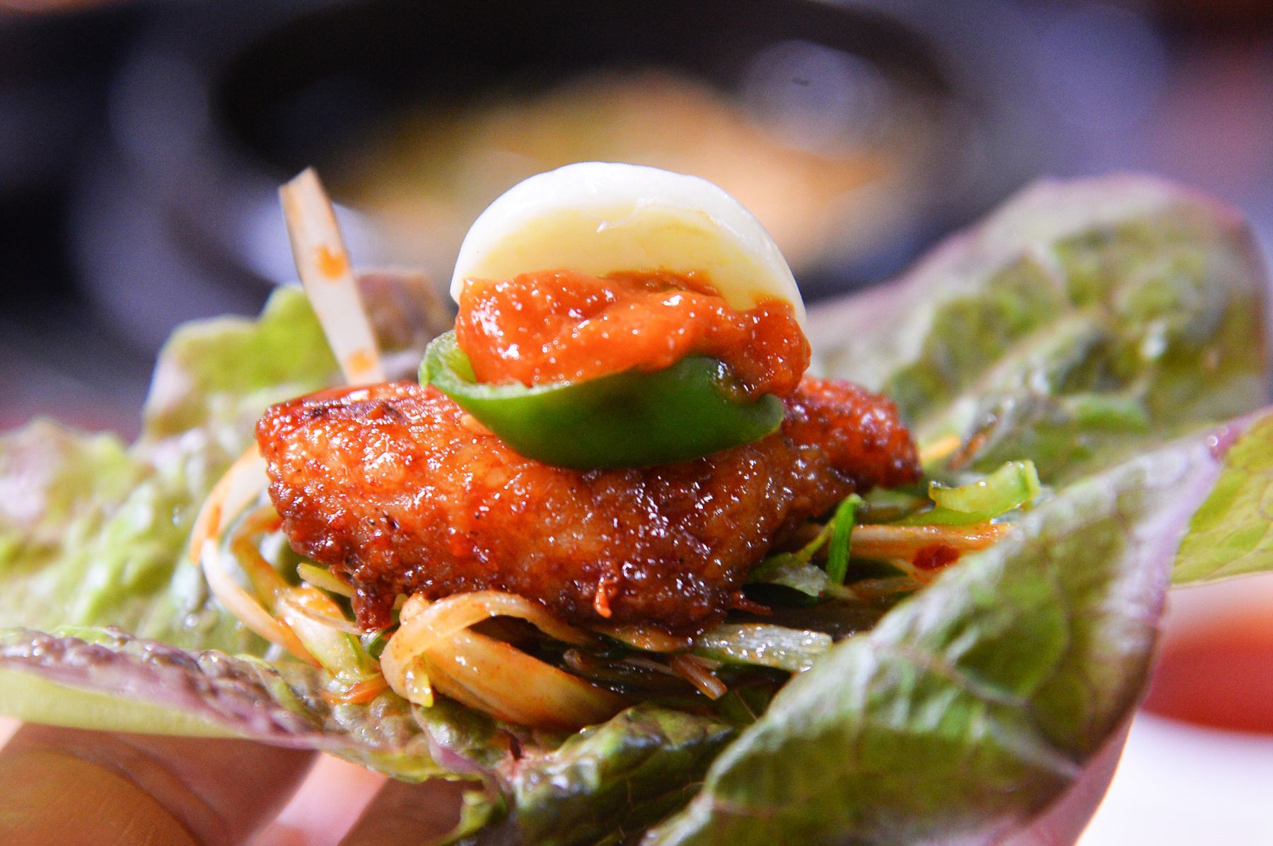 그냥 드셔도 맛있는 매운갈비는 푸짐하게 쌈을 싸서 드셔도 좋습니다.