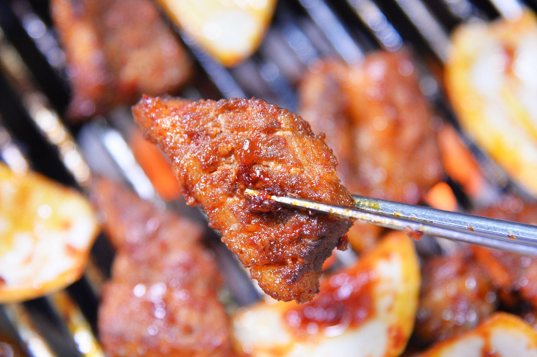 연탄불 위에서 은은하게 익히면 갈비의 맛이 한층 업그레이드 됩니다.