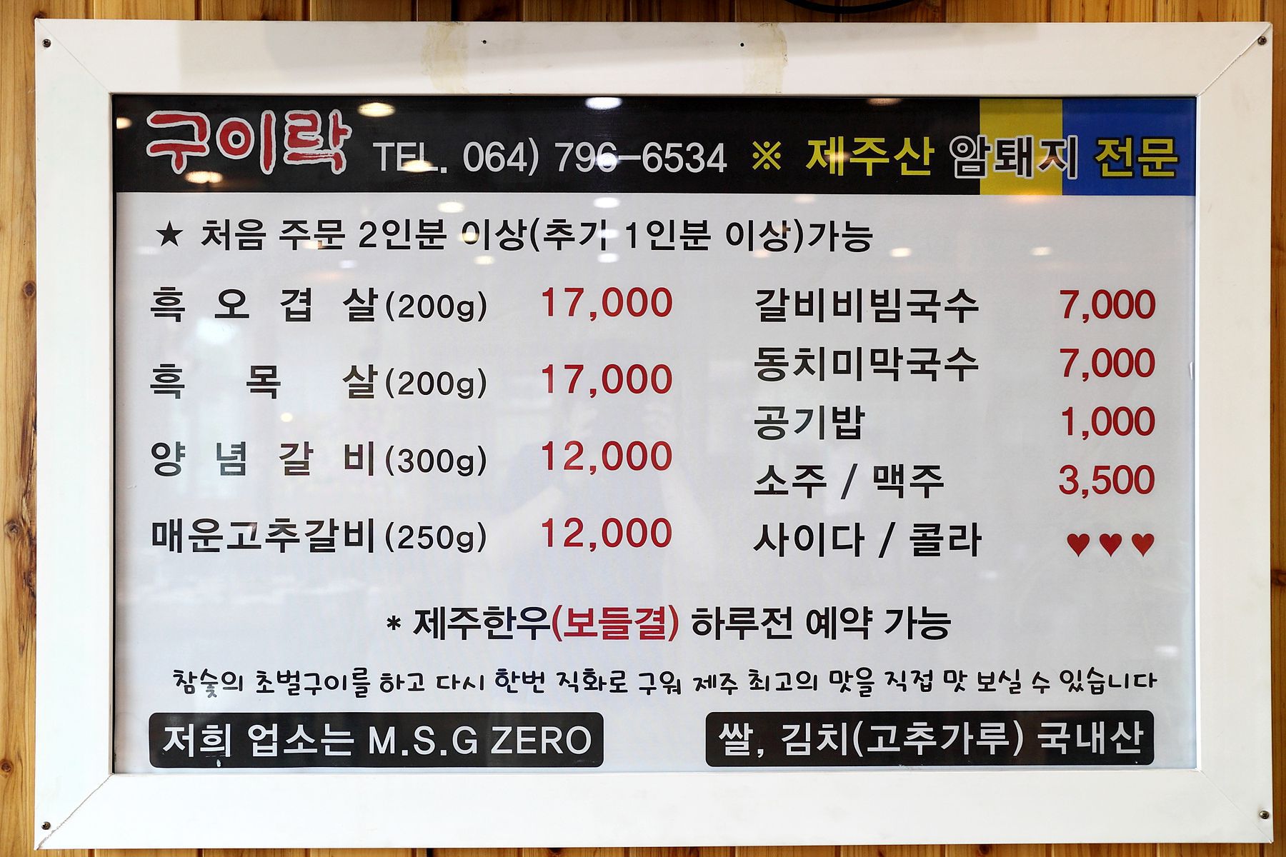 구이락은 제주도 한림읍 동명리 협재해수욕장 근처에 위치한 흑돼지 전문점으로