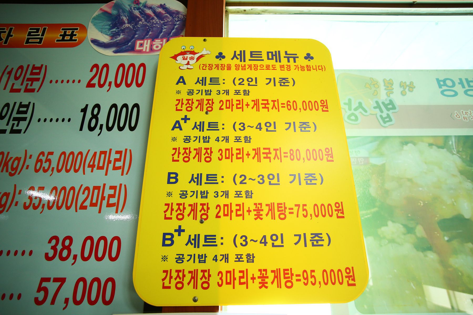 메뉴로는 꽃게게장백반,양념게장,쌈장게장,게국지,꽃게탕 등이 준비되어 있으며