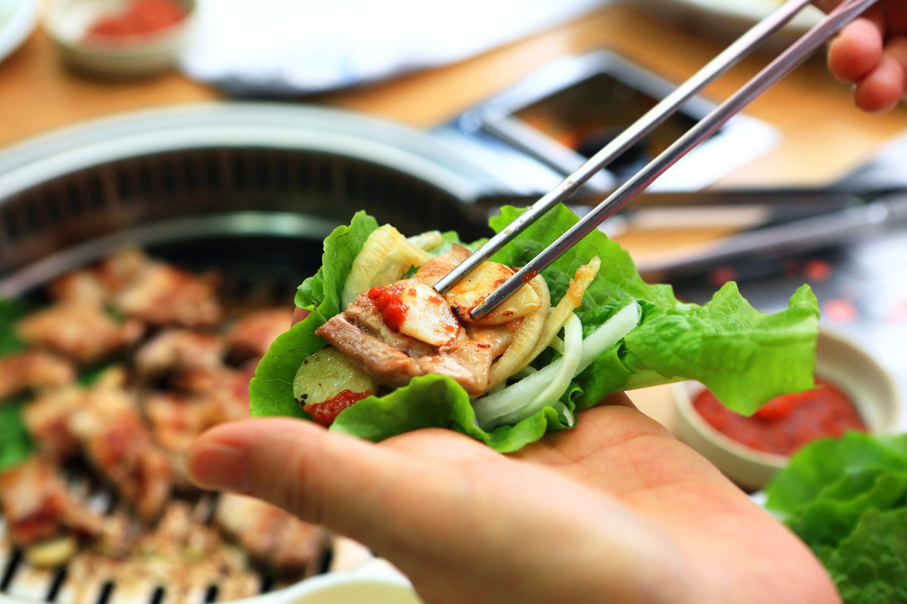 그냥 드셔도 고소하고 맛있는 흑돼지고기는 푸짐하게 쌈을 싸서 드시면 더욱 맛있답니다.