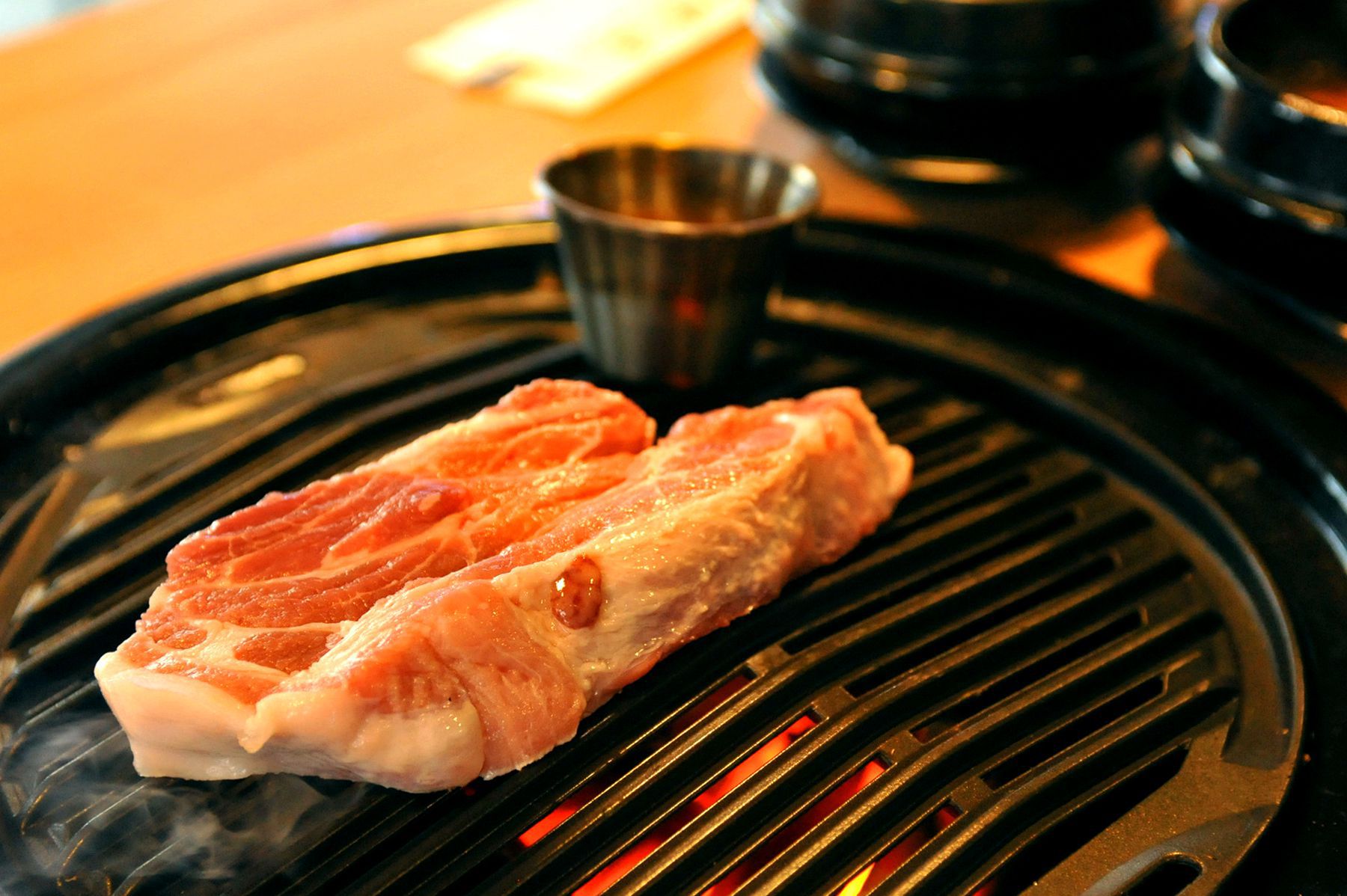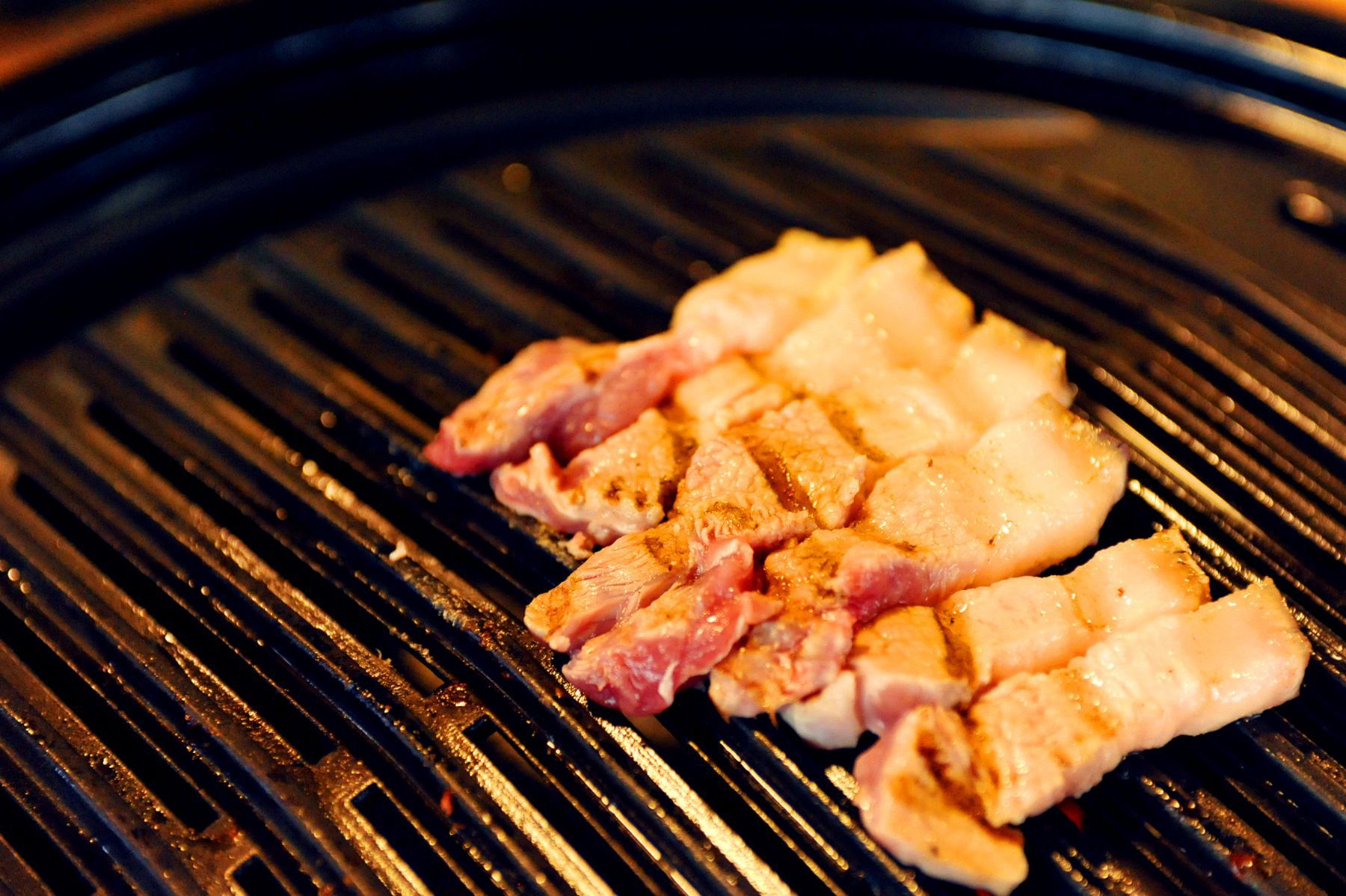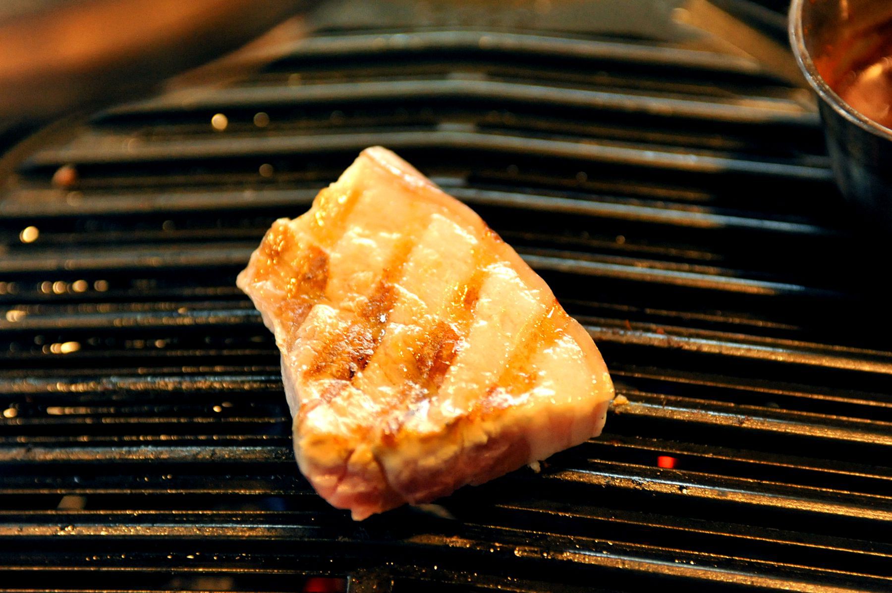 5분정도 더 구우시면 맛있는 제주 흑돼지 목살을 드실 수 있습니다.