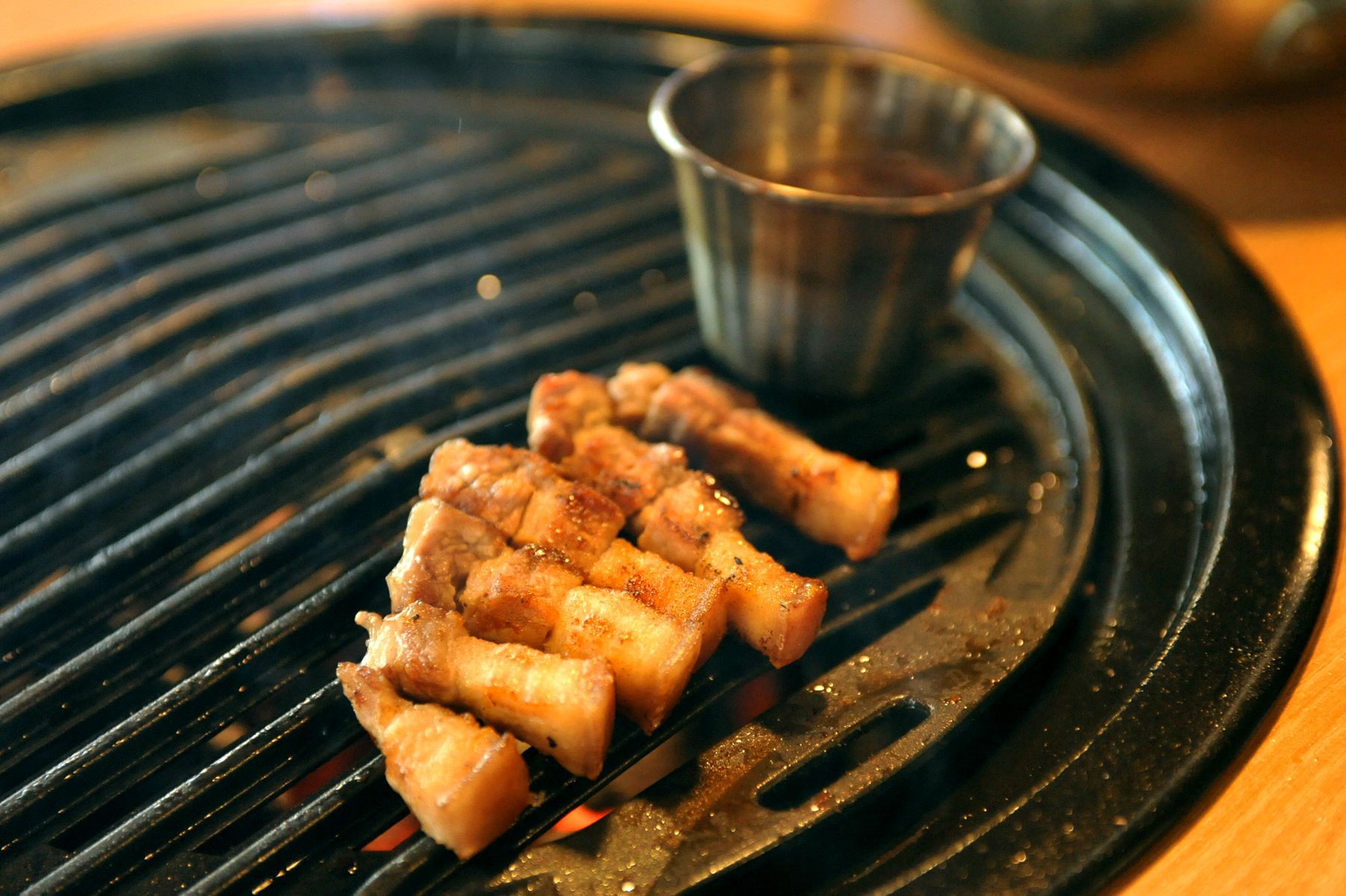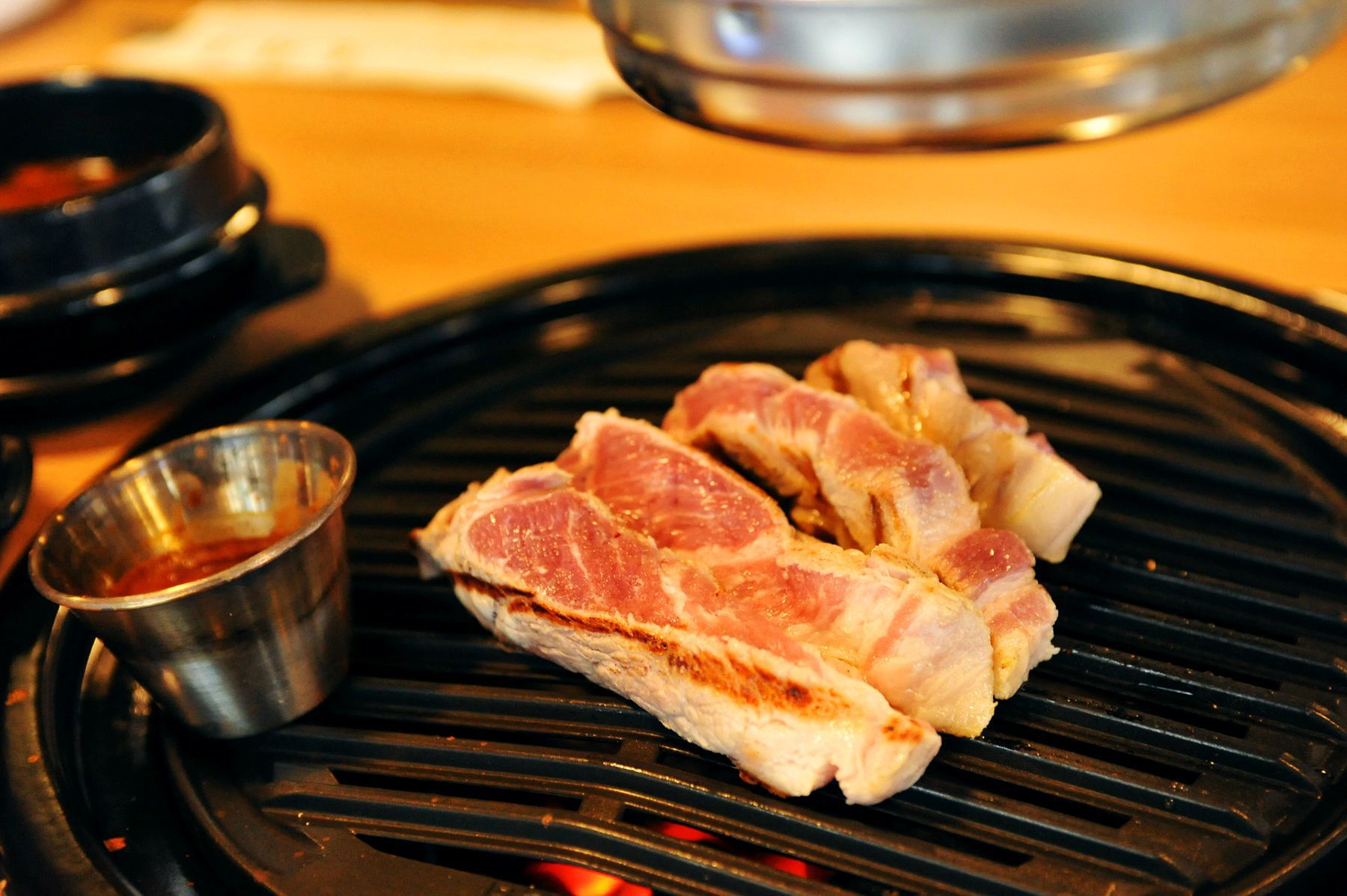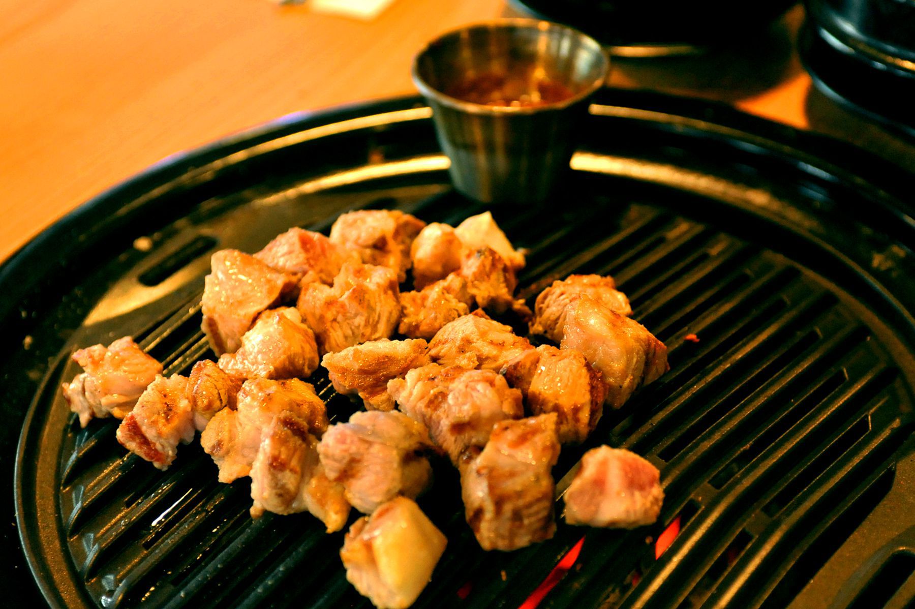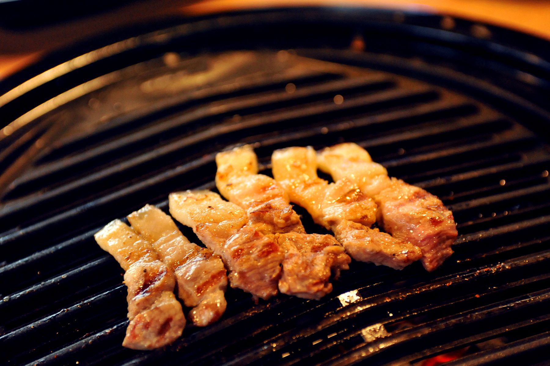 5분정도 더 구우시면 맛있는 제주 흑돼지 목살을 드실 수 있습니다.