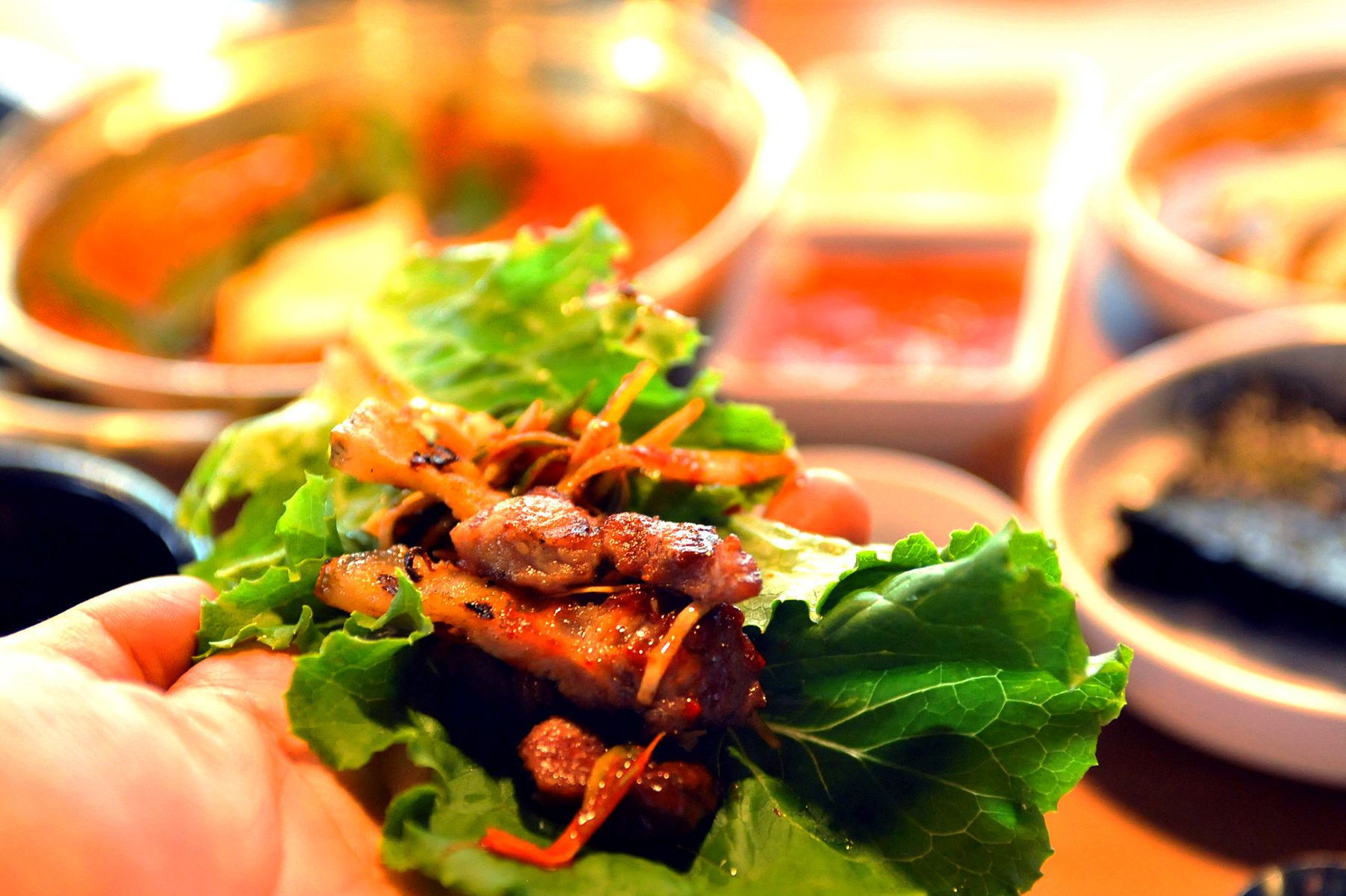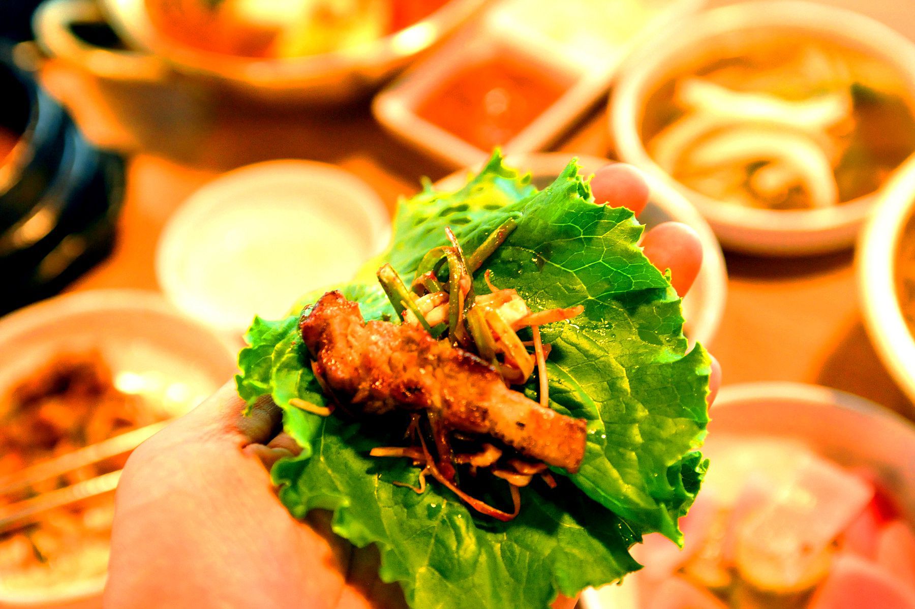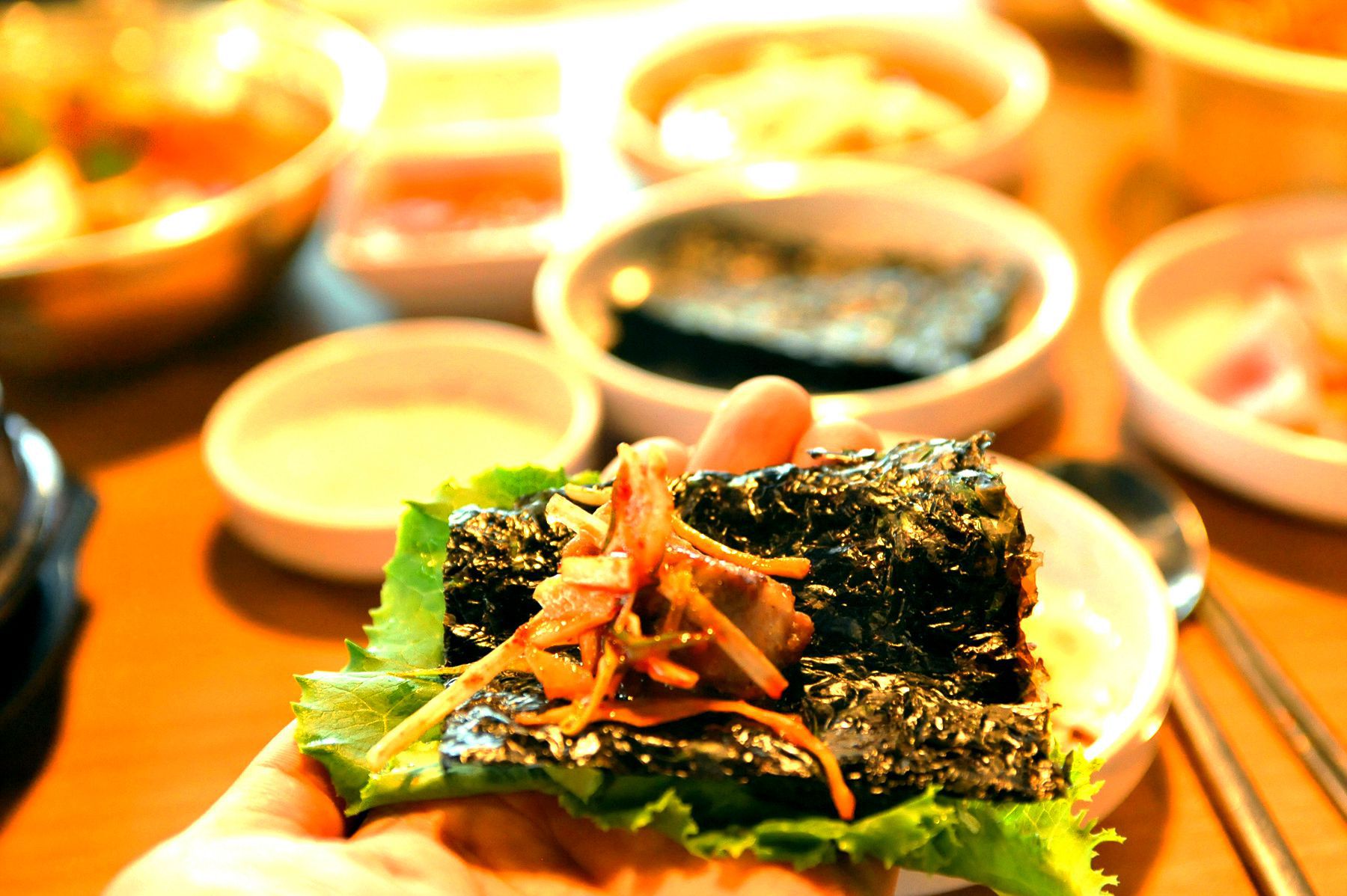 김을 불판에 살짝 구워서 싸 드시면 더욱 푸짐하고 맛있게 드실 수 있습니다.