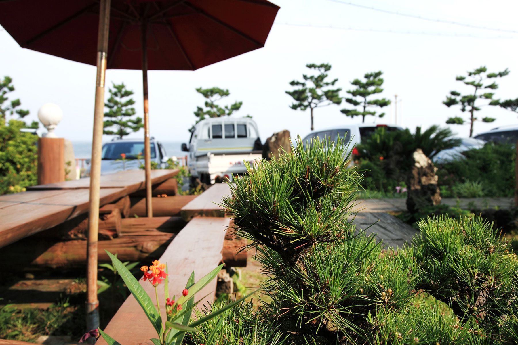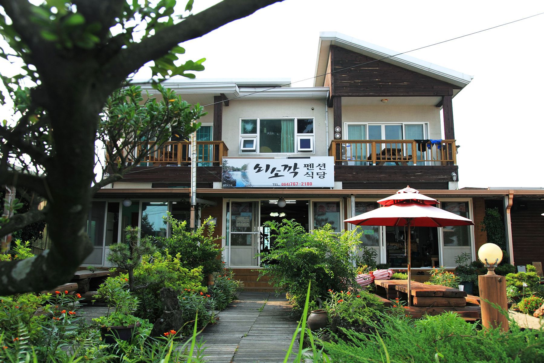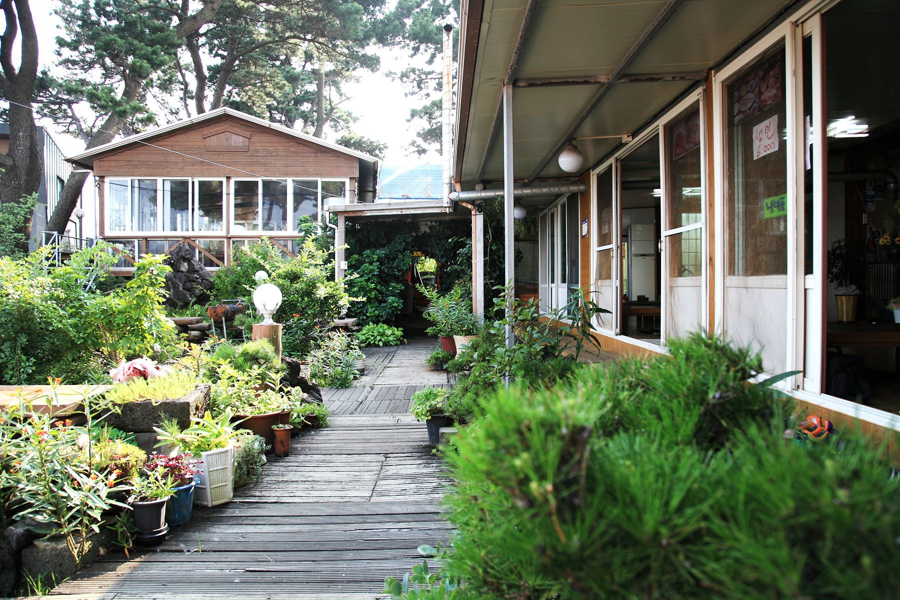들어오는 입구부터 제주도의 향기가 물씬 풍기는 나무 정원으로 잘 가꾸어져 있어