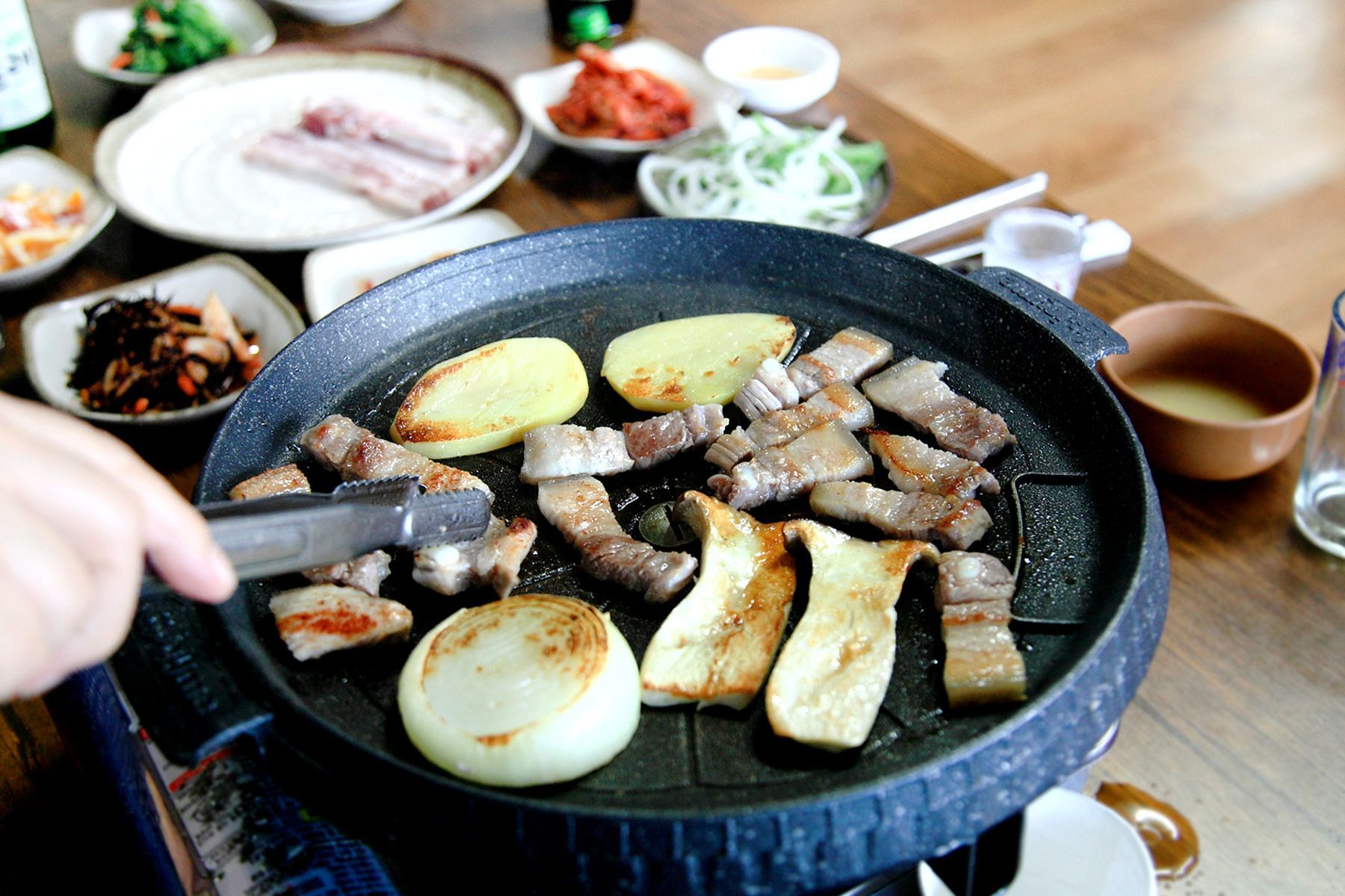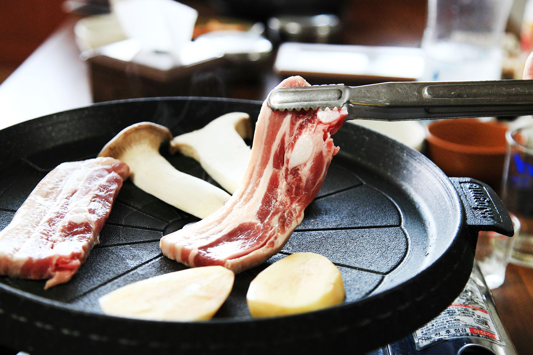 이곳의 흑돼지는 양파와 버섯,감자와 함께