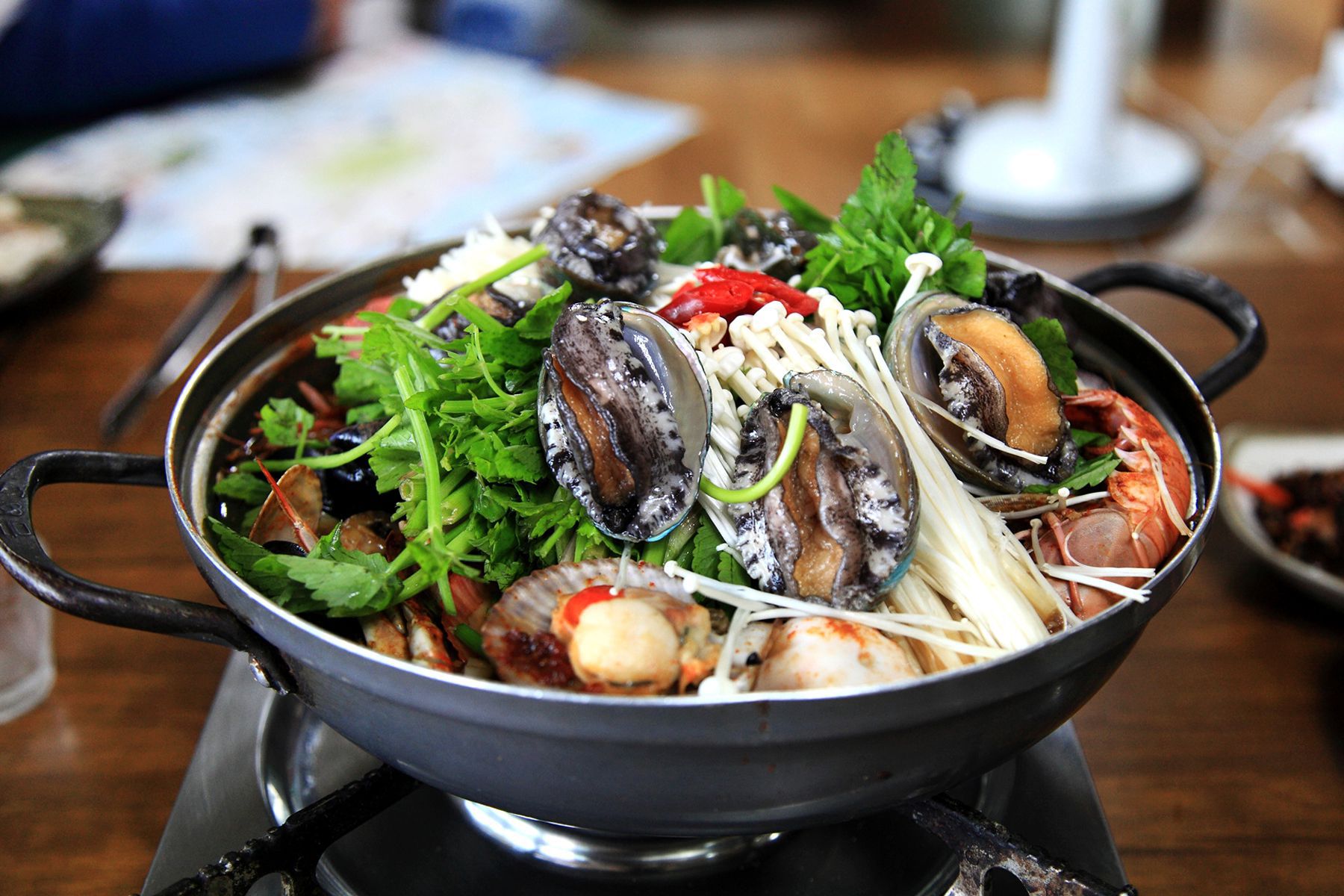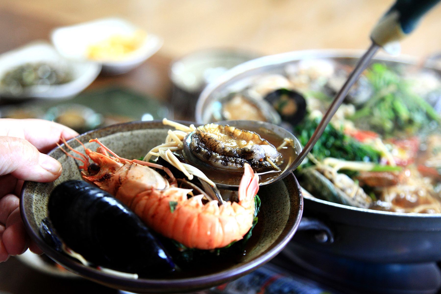 쉽게 맛볼수 없는 전복뿐만 아니라 게,새우,소라,홍합,조개등 각종