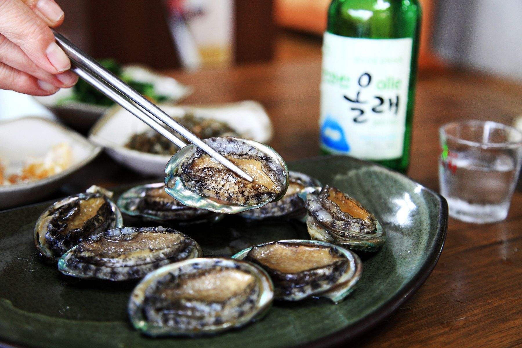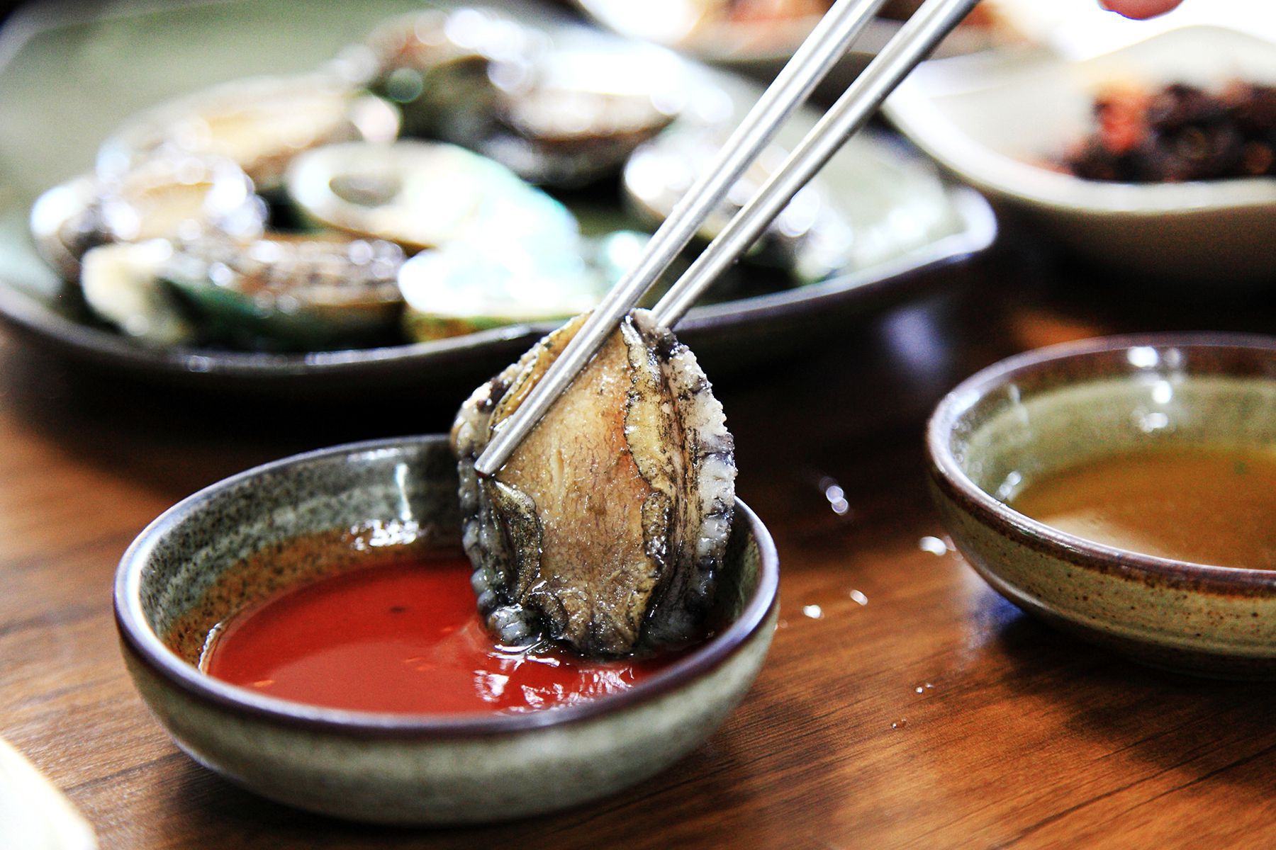 싱싱한 전복을 새콤달콤 초장에 찍어서 먹으면 입안에서