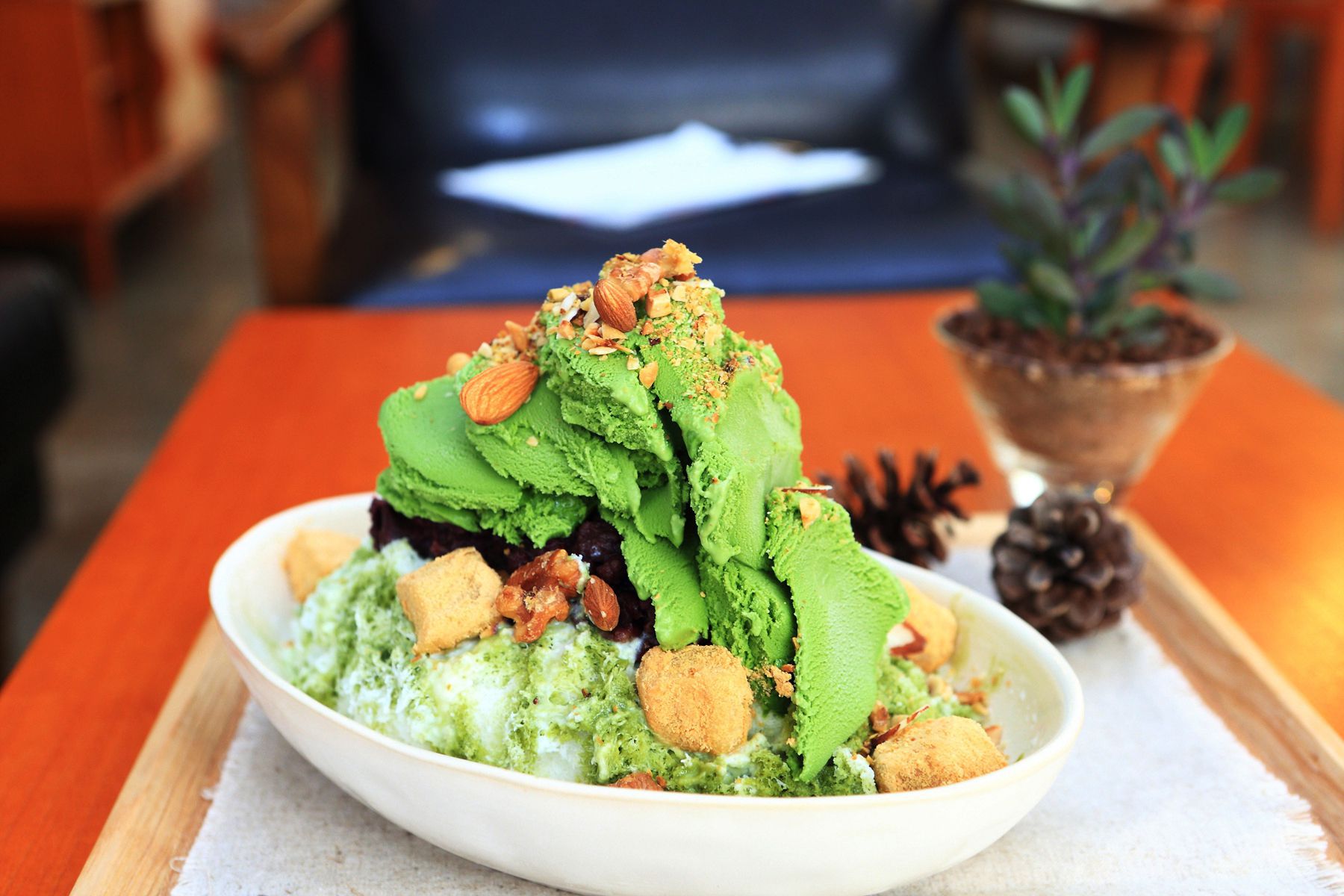 직접 끓여 만든 100% 국산팥에 우유얼음과 하겐다즈 녹차아이스크림이 올라가