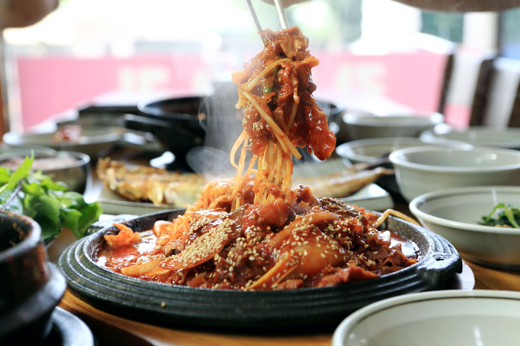 돌솥에 담겨져나와 따뜻하게 드실 수 있으며 흑돼지뿐만아니라 오징어,콩나물등이 섞여져있어 푸짐하게 즐길 수 있습니다.