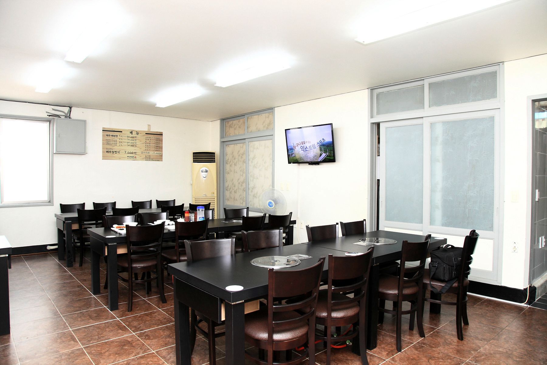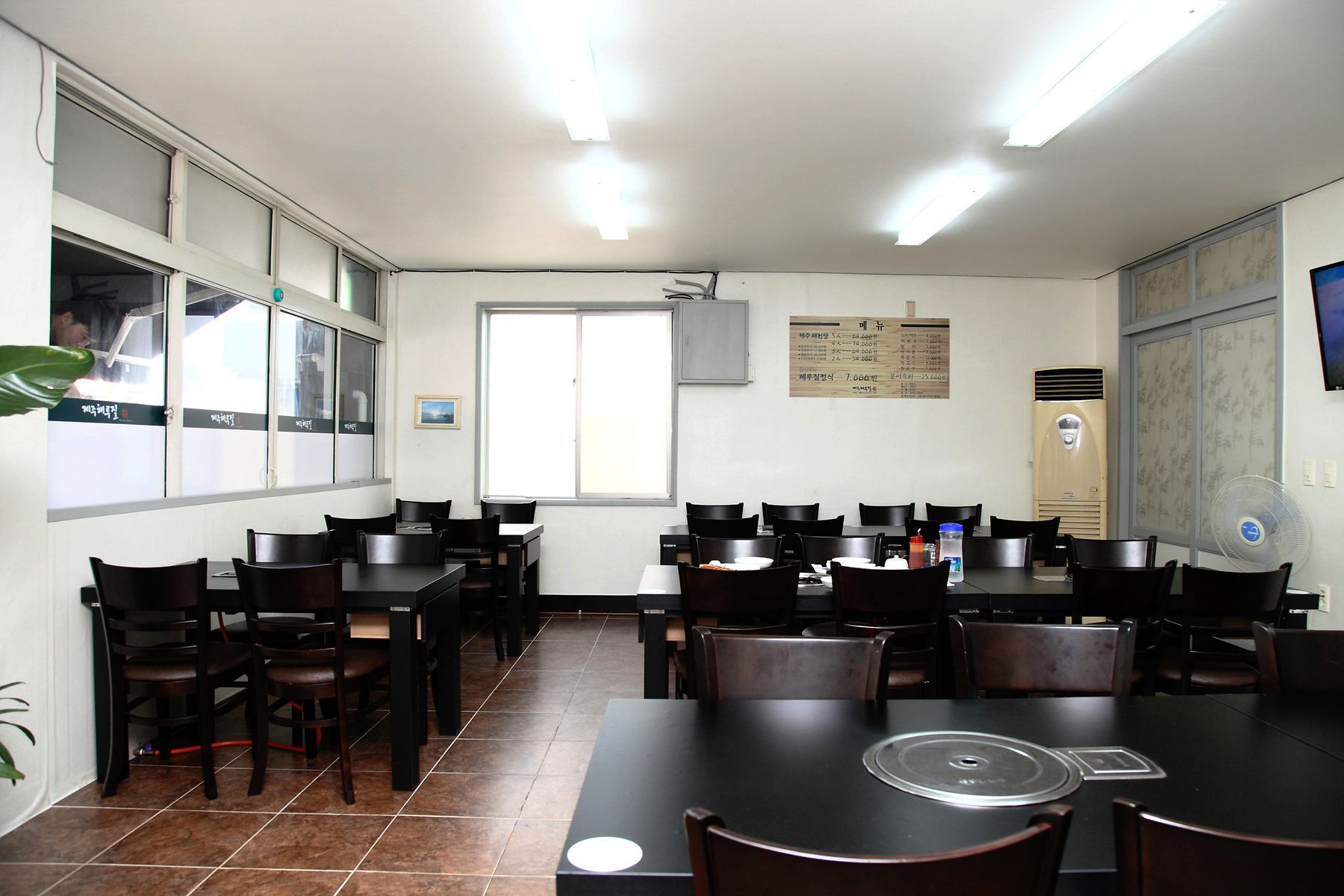 식당안은 블랙&화이트조화가 아주 잘 어울리는 깔끔한 인테리어로 꾸며져있어