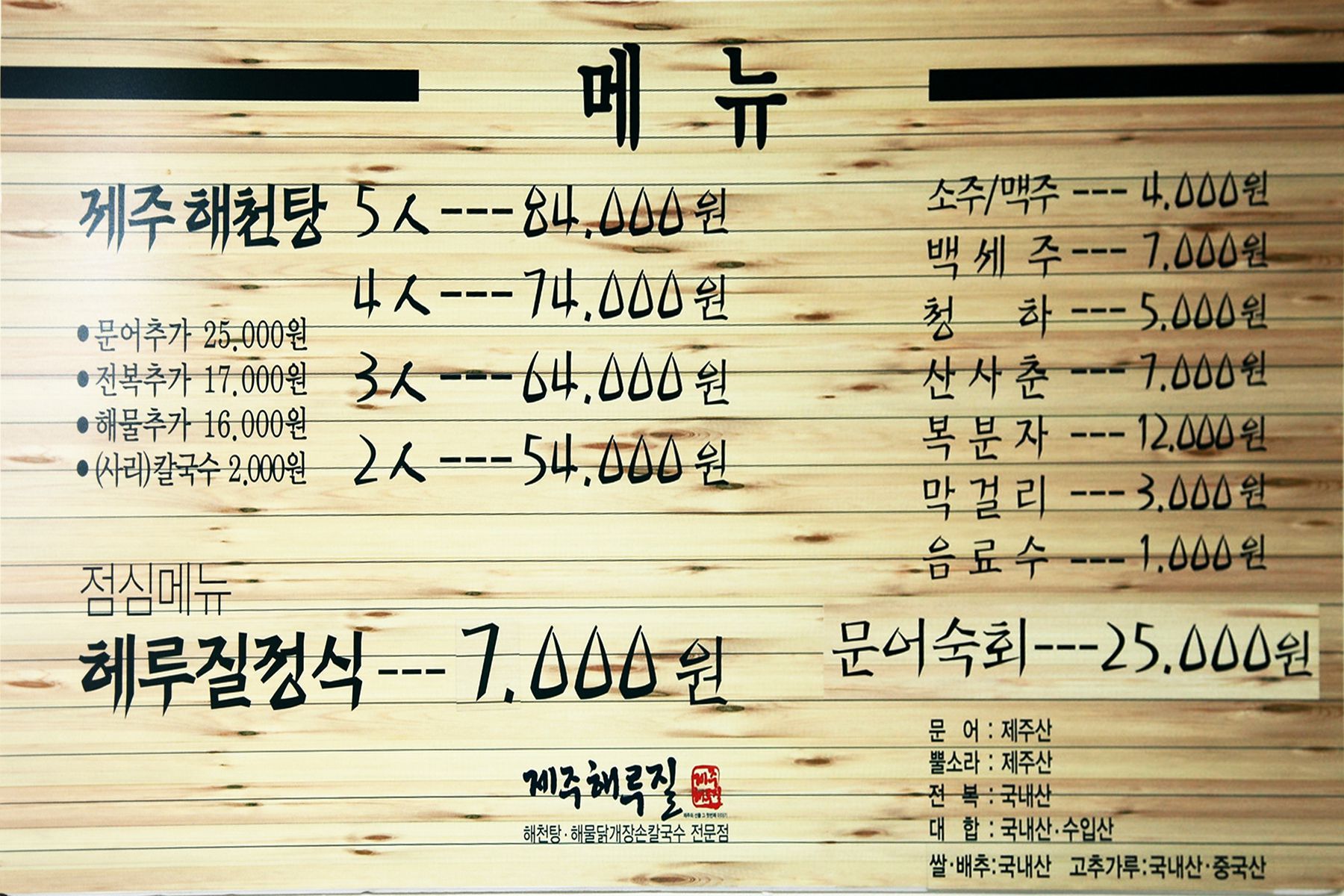 특히나, 해천탕에들어가는 모든 재료는 제주산,국내산을 사용하여