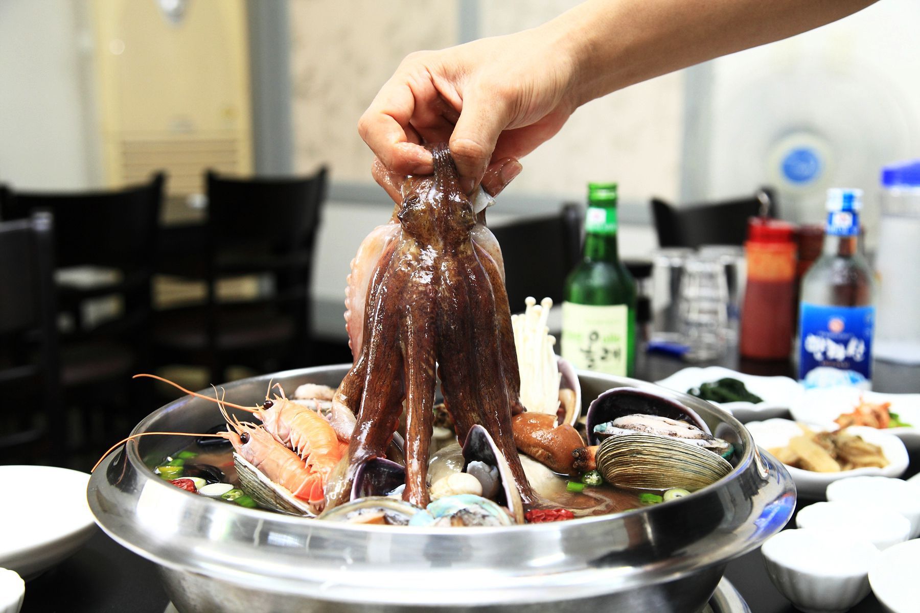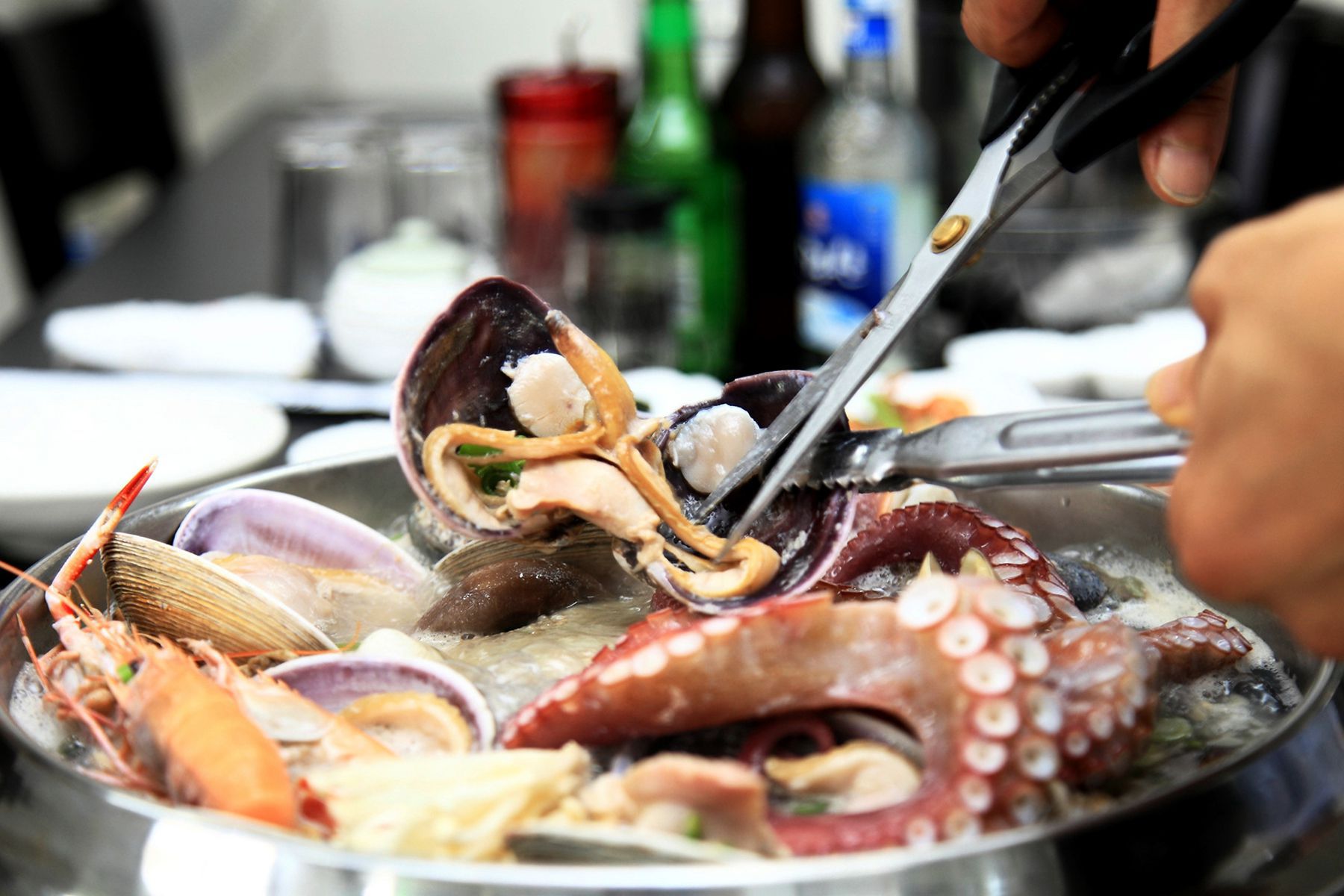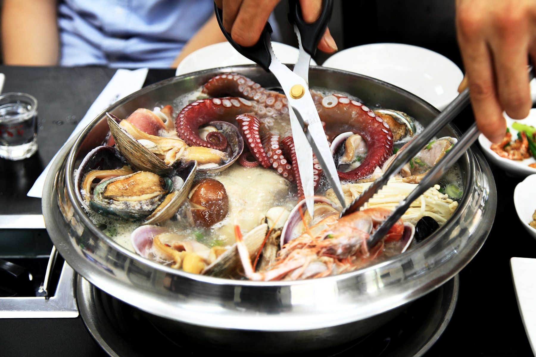 끓기시작하면 하나부터 열까지 먹기좋게 다 손질해 주시기때문에 편하게 맛있게 먹기만 하면 되기 때문에,
