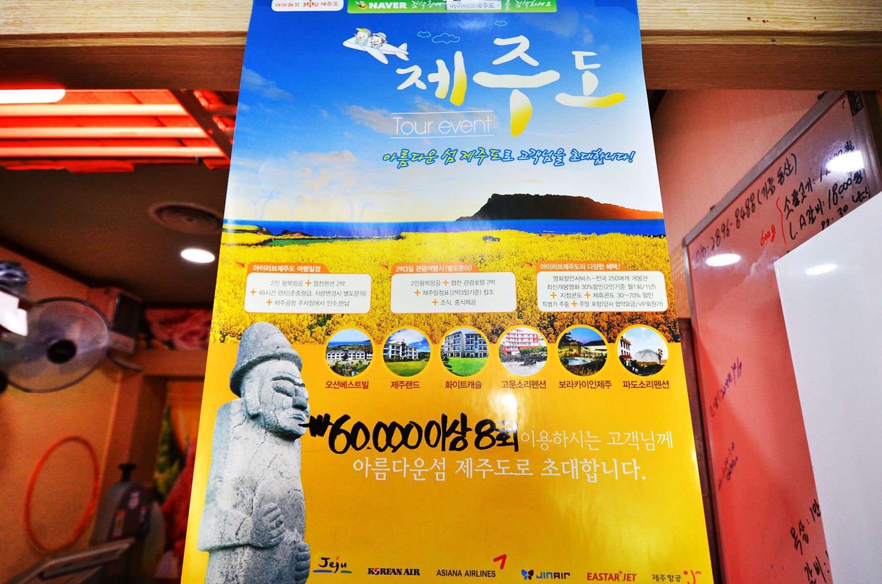 6만원이상 8회 이용하신 고객께는 제주도로 가실 수 있는 티켓을 드리는 행사도 진행하고 있으니