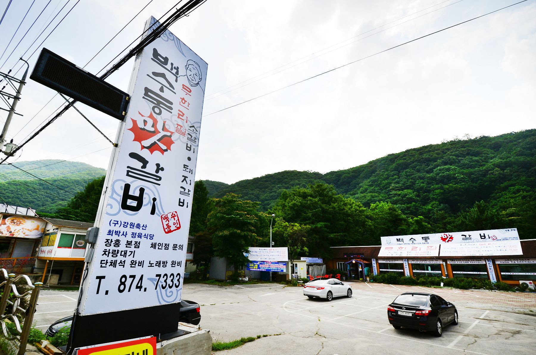 백수동무한리필맛갈비는 경기도 양주시 장흥유원지 내 두리랜드 옆에 위치하고 있습니다.