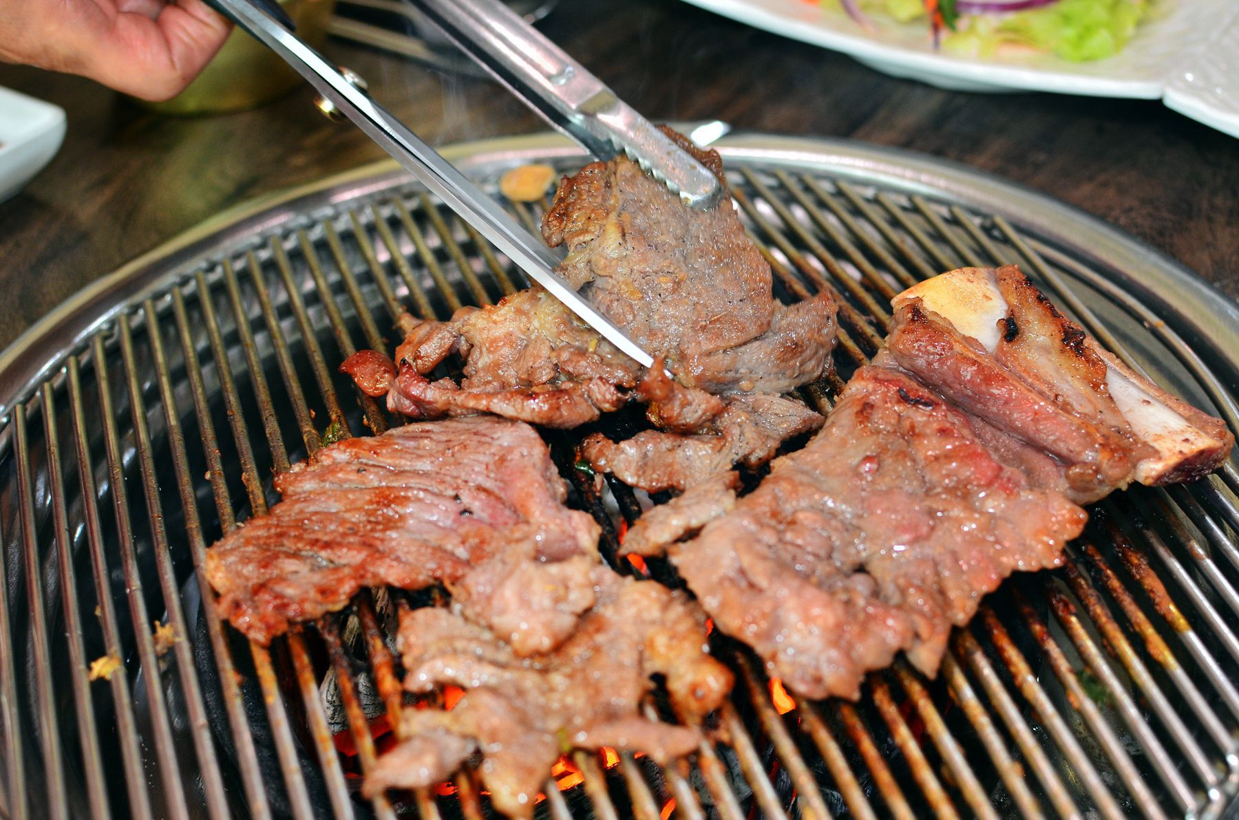 숯불위에서 맛있게 구워진 갈비는 그냥 드셔도 좋고 푸짐하게 쌈을 싸서 드셔도 좋습니다.