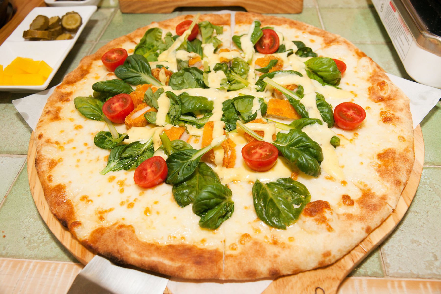 자연산치즈의 고소함과 싱싱한 채소들의 아삭함이 잘 어우러져 맛있는 피자랍니다.