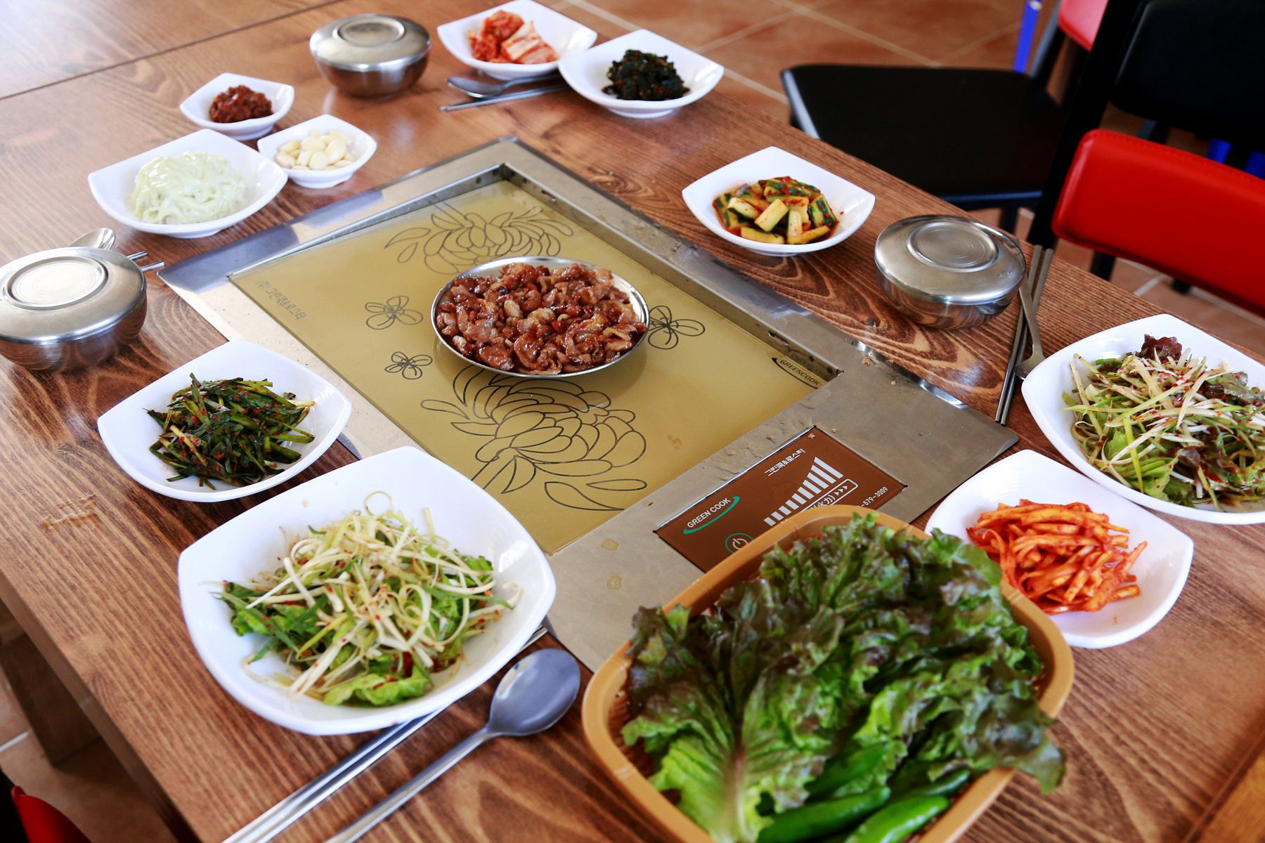 정갈한 상차림과 다양한 밑반찬이 시선을 빼잇기에 충분합니다.