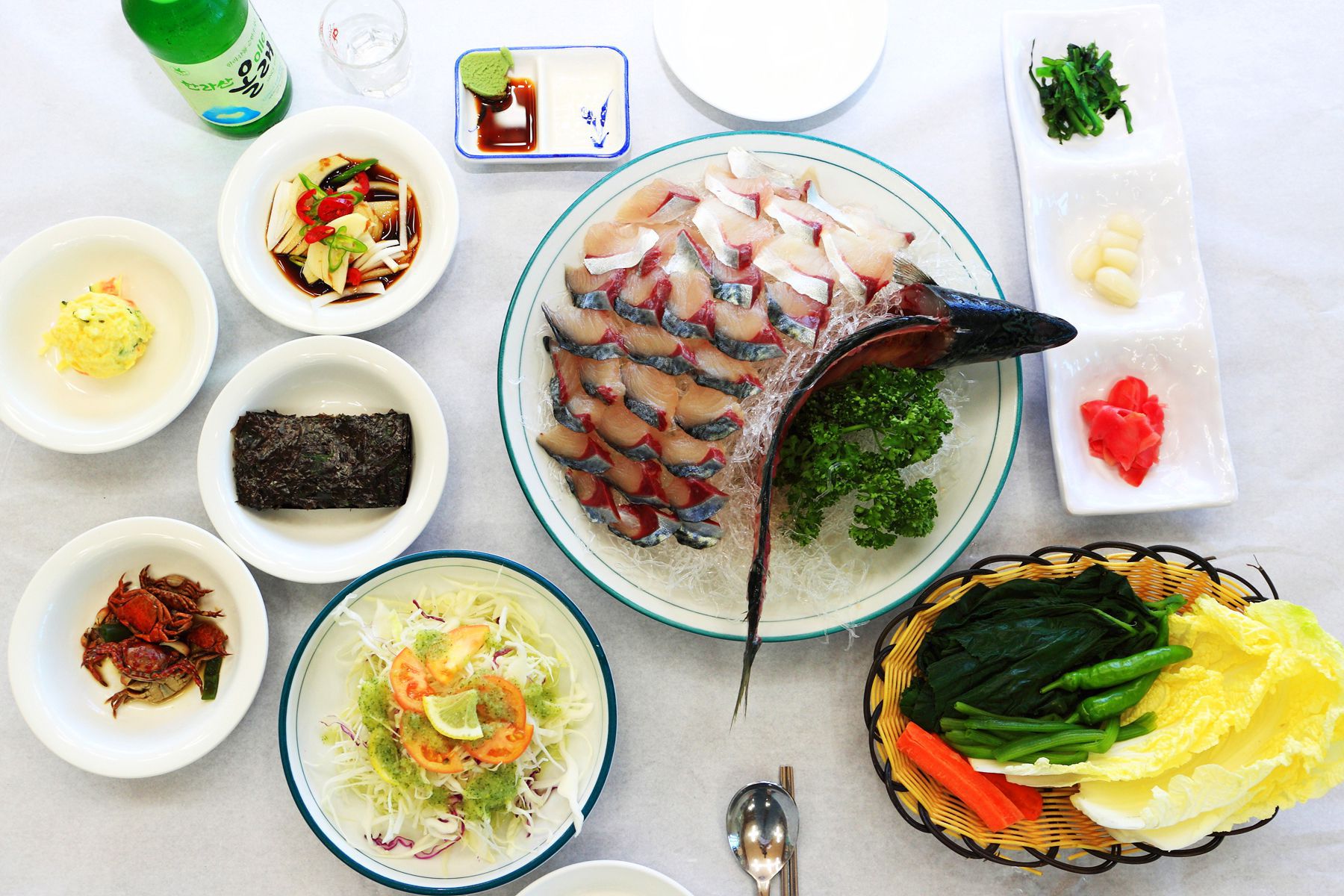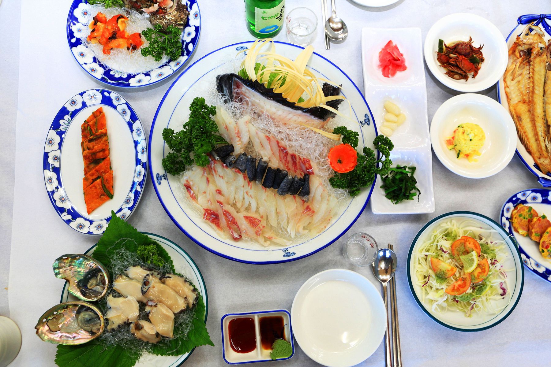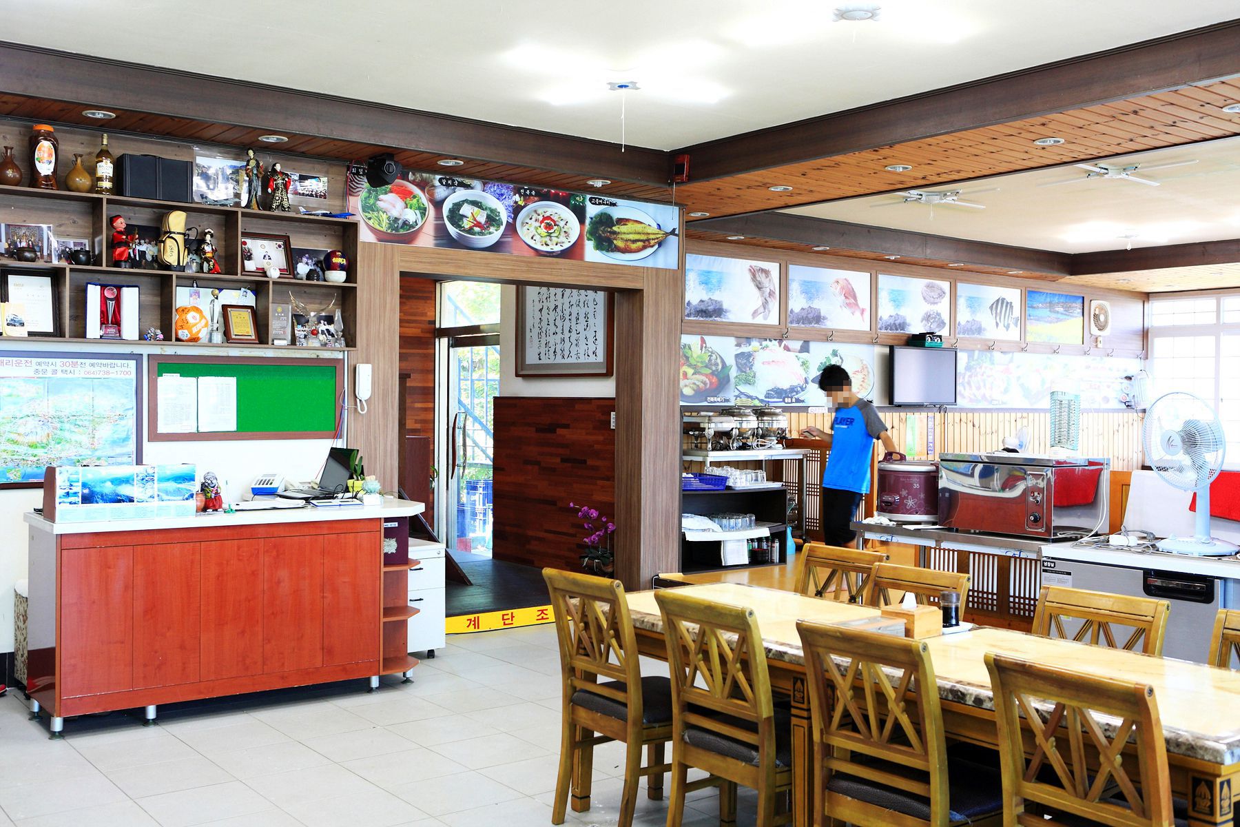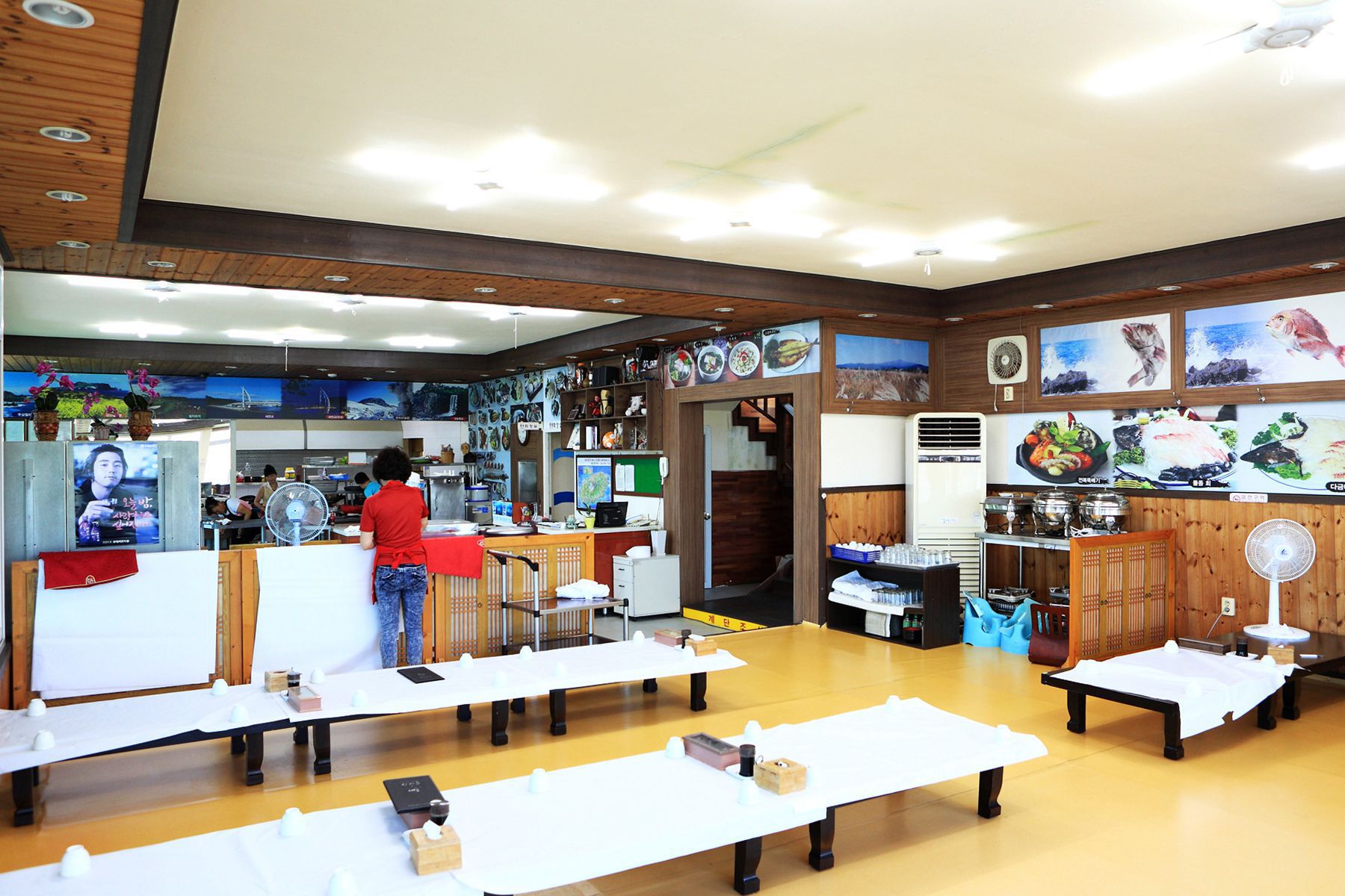 산뜻하고 깨끗한 실내와 바다가 내려다보이는 멋진 전망 ! 신선한 재료만을 사용하여 푸짐하게 차려지는 상차림!