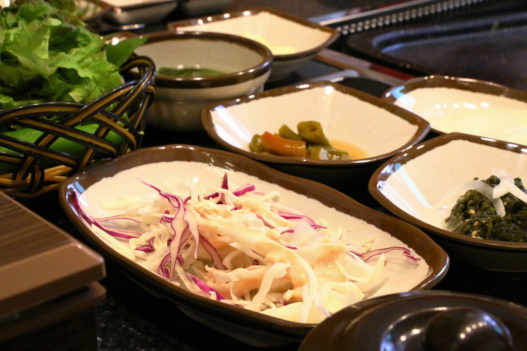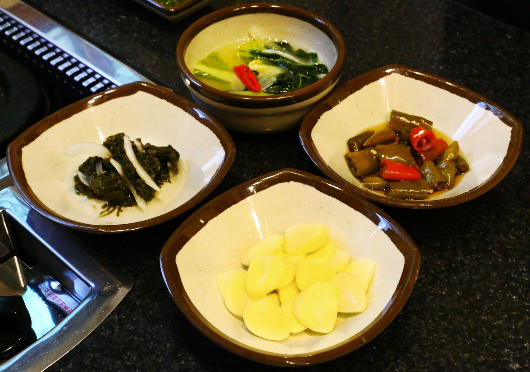 먹음직스런 밑반찬들이 메인음식인 고기가 익기전에