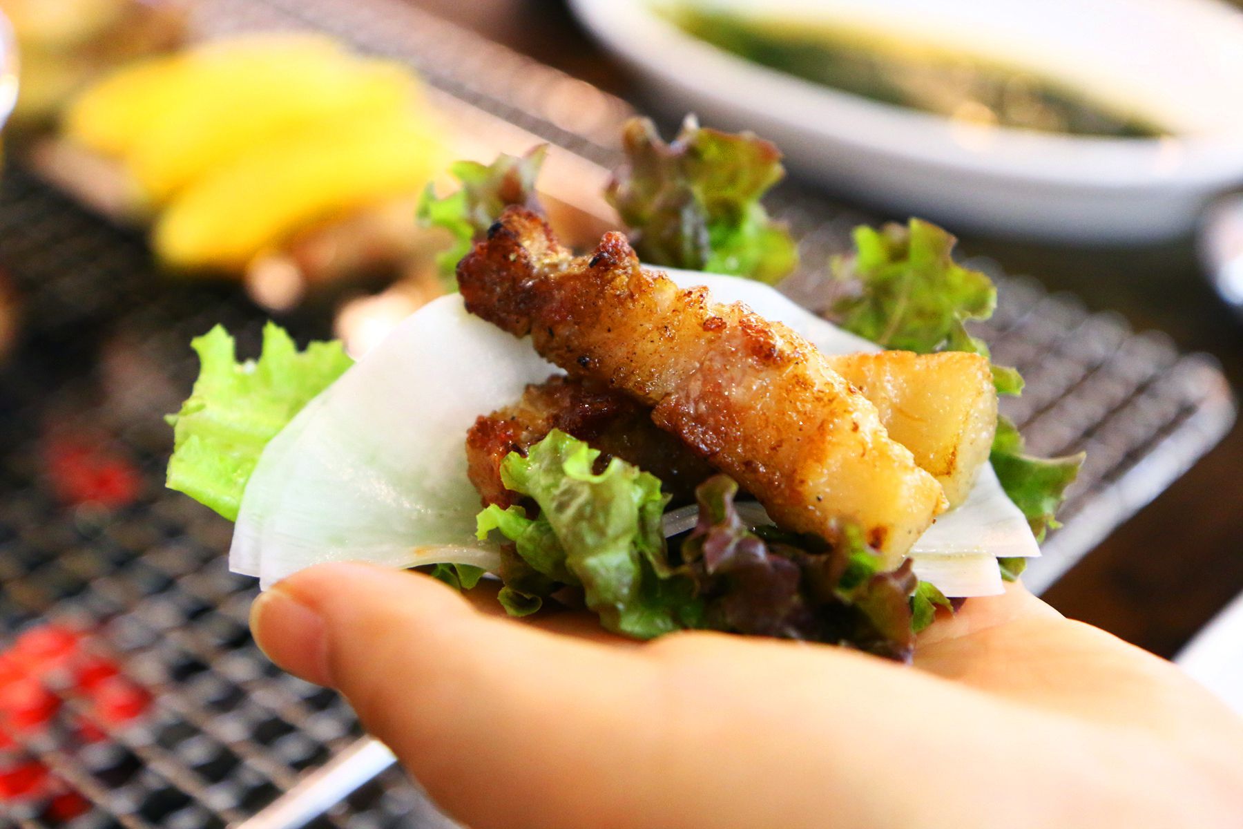 잘구워진 삼겹살은 그냥 드셔도 맛있지만 푸짐하게 쌈을 싸서 드시면 더욱 맛있습니다.
