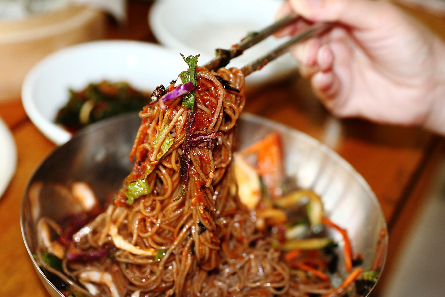 메밀막구수와는 또 다른 매력을 느낄 수 있는 아삭한야채와 양념장이 더해져 더욱 맛있는 비빔국수!