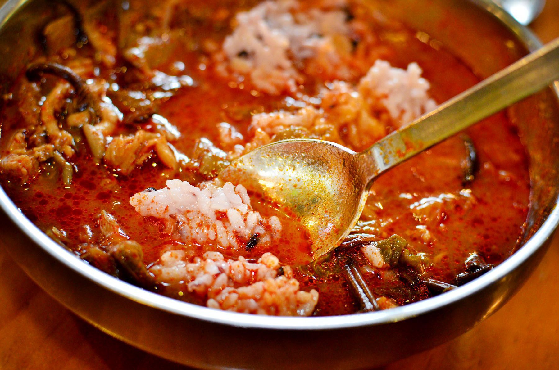 인공조미료 대신 직접 만든 천연조미료를 넣어 더욱 깔끔하고 담백하며 칼칼한 국물의 맛이 일품인 육개장과