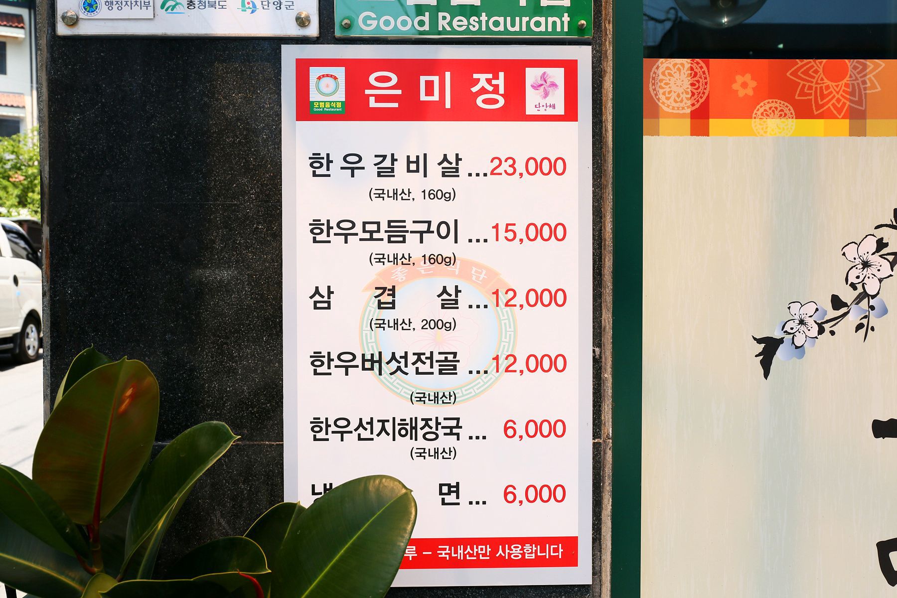 단양의 16곳 모범 음식점으로 선정된 '은미정'은
