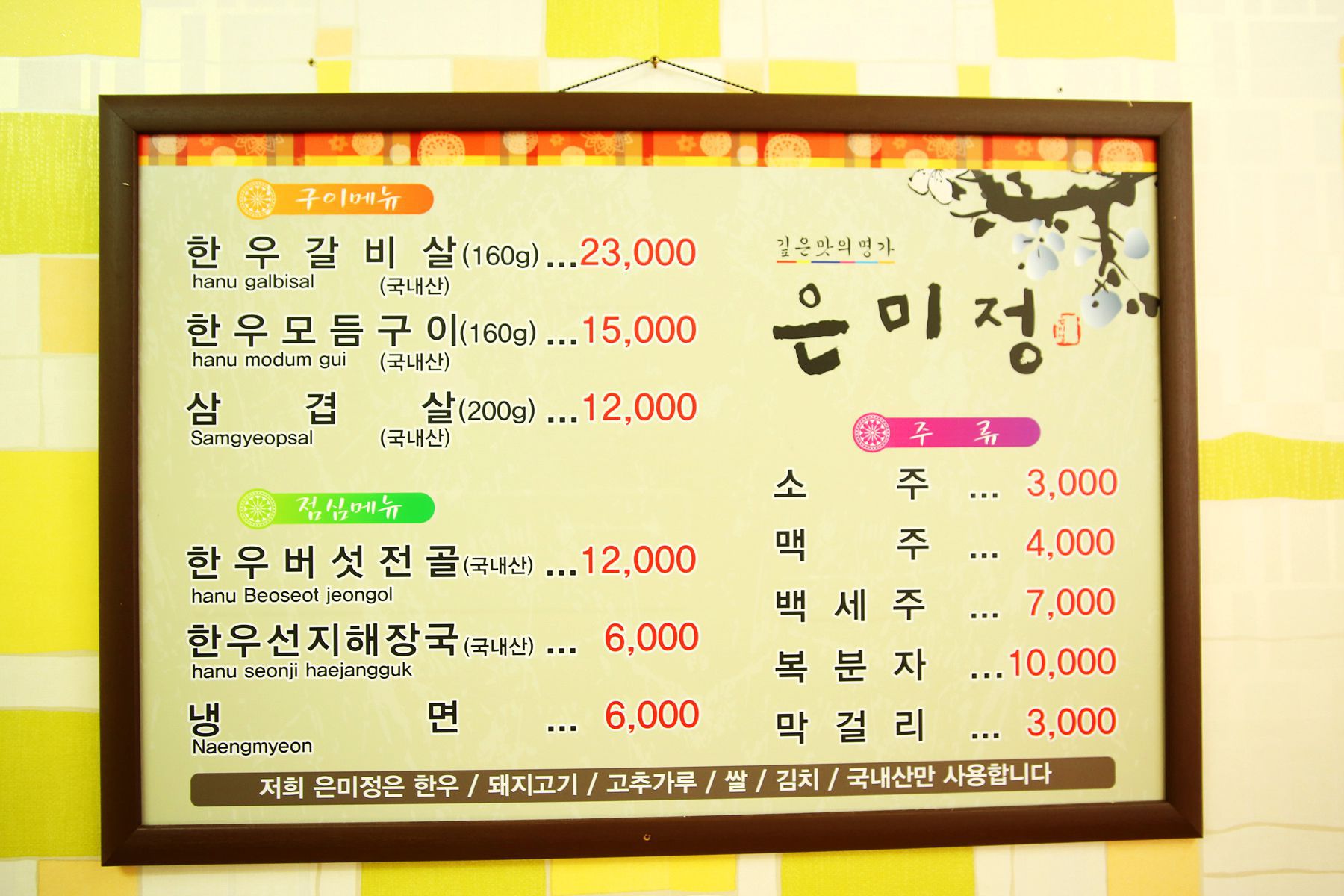 그렇다면 고민없이! 맛뿐만아니라 모범음식점으로 지정될만큼 정직한 식당 은미정을 찾아