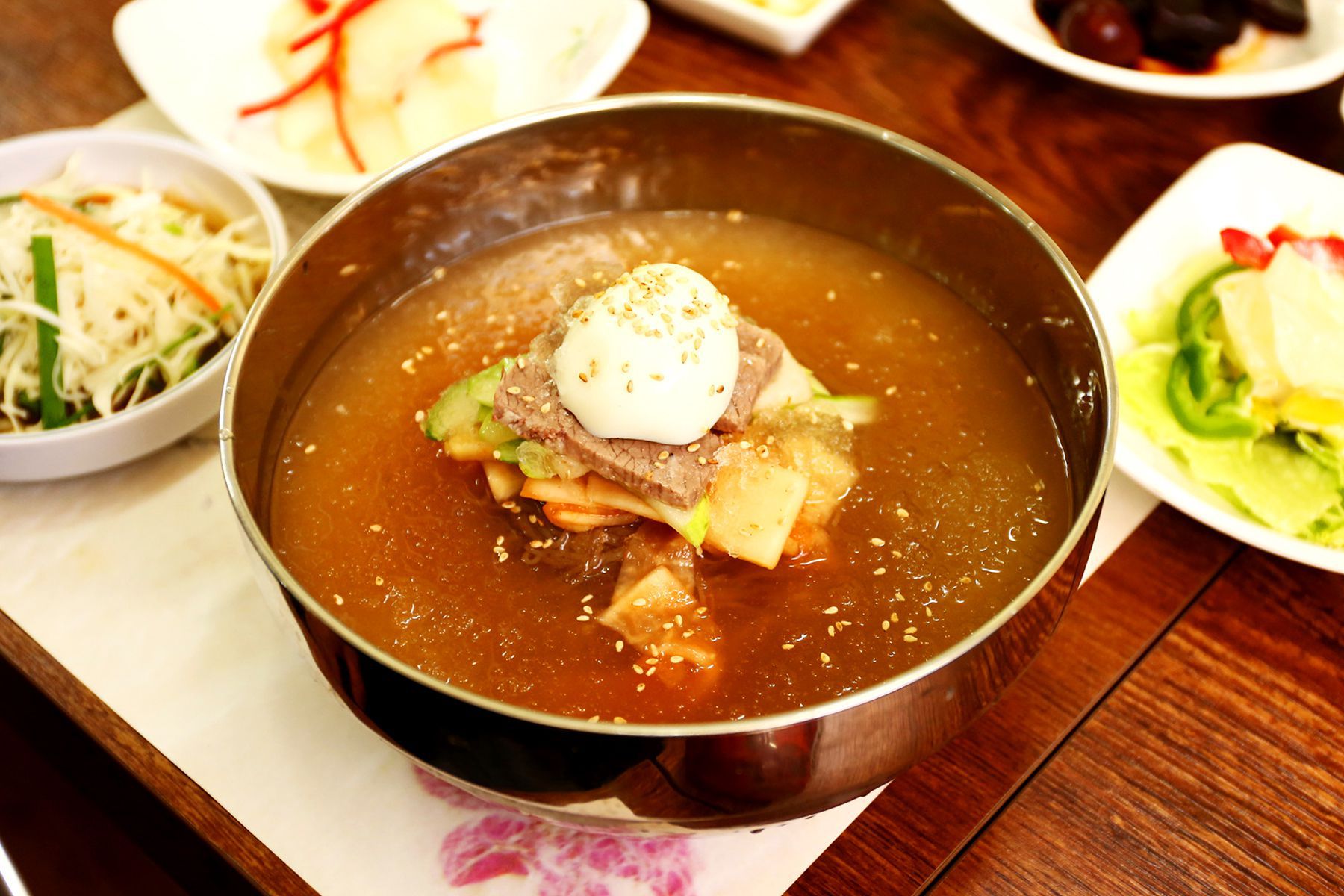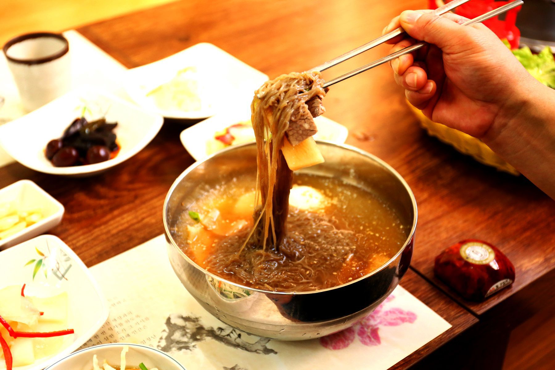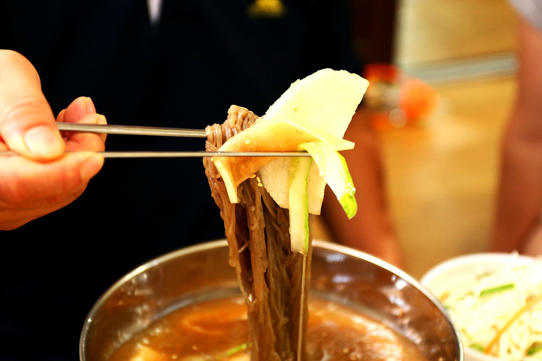 깔끔하고,또 깔끔하단 말이 가장 잘 어울리는 시원하고 담백한 물냉면을 드시면서