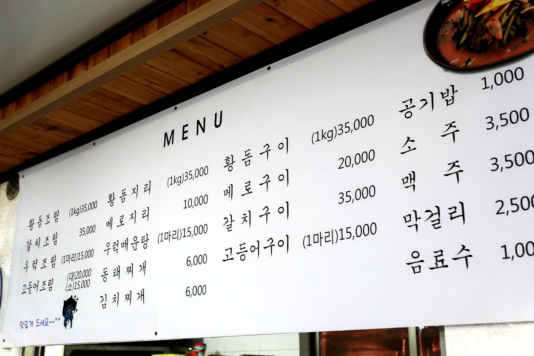 포구앞에 위치해 있다보니 포구에서 생선을 사오시거나 낚시를 해서 잡아오시면 적은 비용을 받고