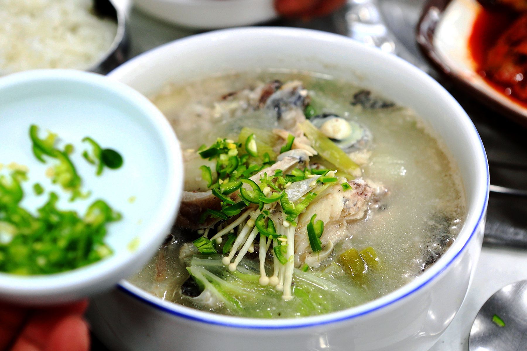맑은 황돔지리탕에는 청양고추를 넣어 드시면 더욱 시원하고 깔끔한 맛을 느끼실 수 있습니다.