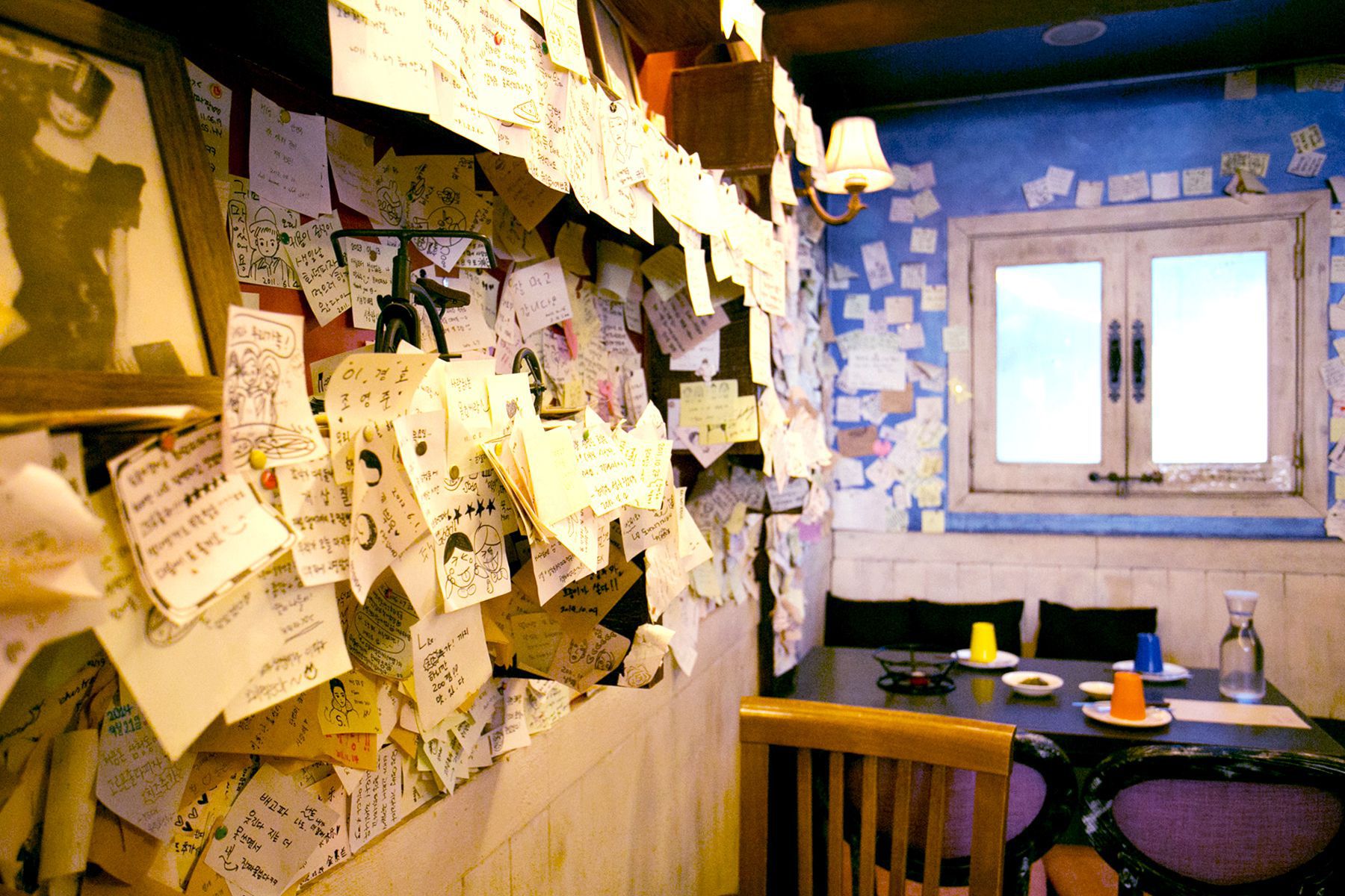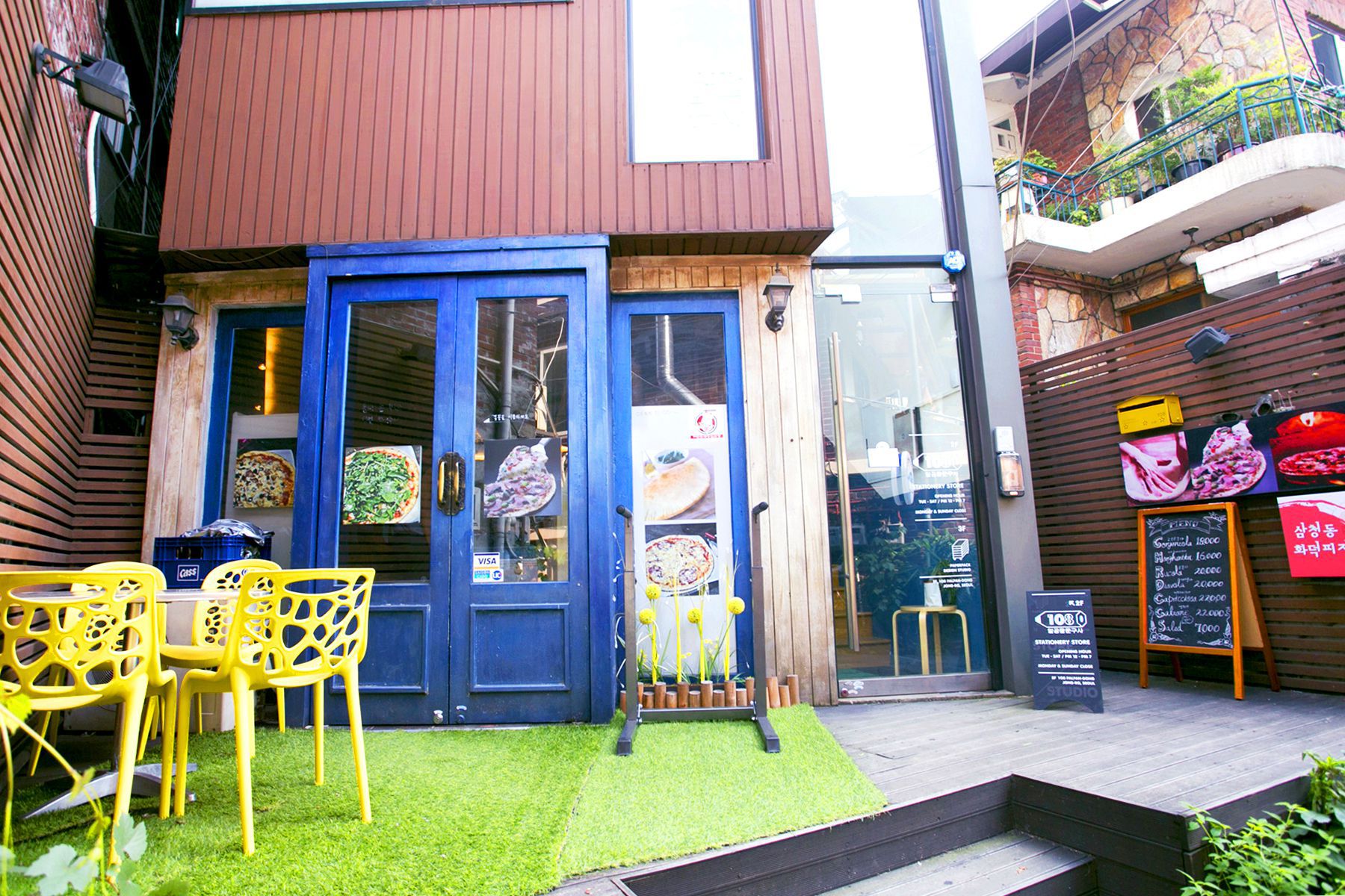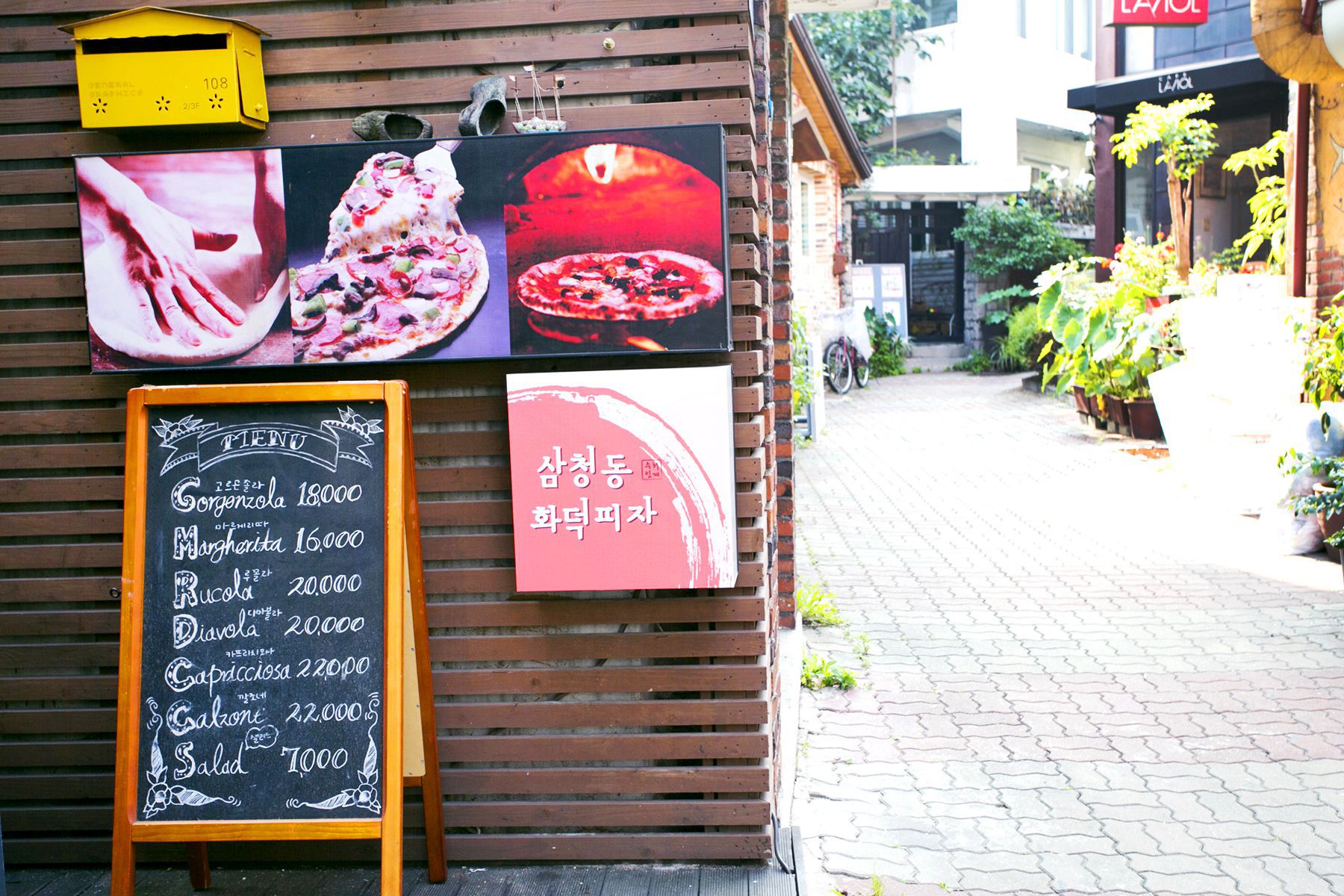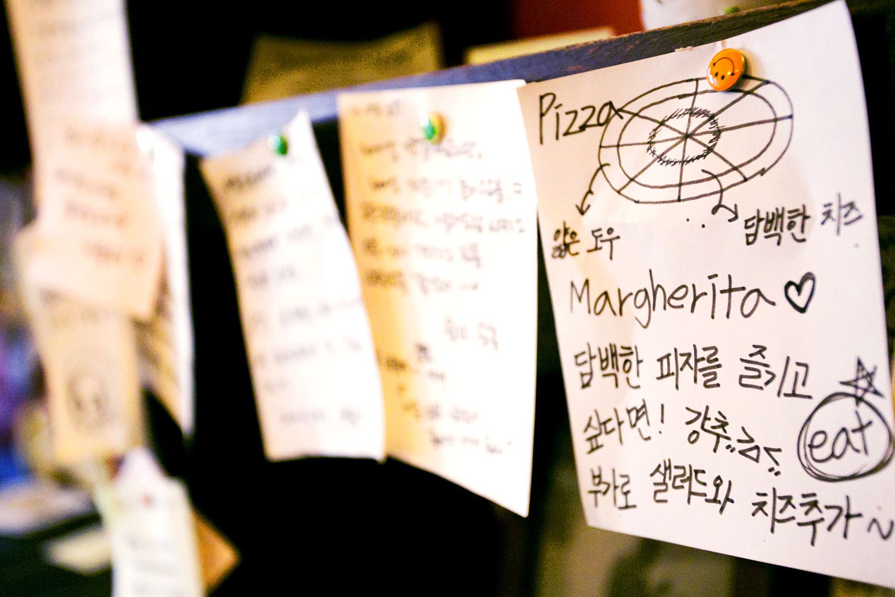식당밖은 예쁜 외관으로 식당내부는 다녀가신 손님들이 남기고 간 포스트잇으로 시선을 사로잡는 삼청동화덕피자!
