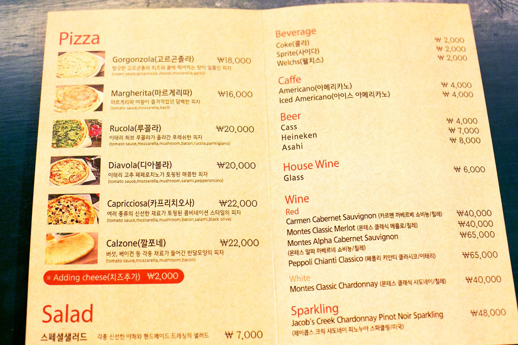 메뉴로는 가장 인기 좋은 다양한 화덕피자와 신선한 샐러드,