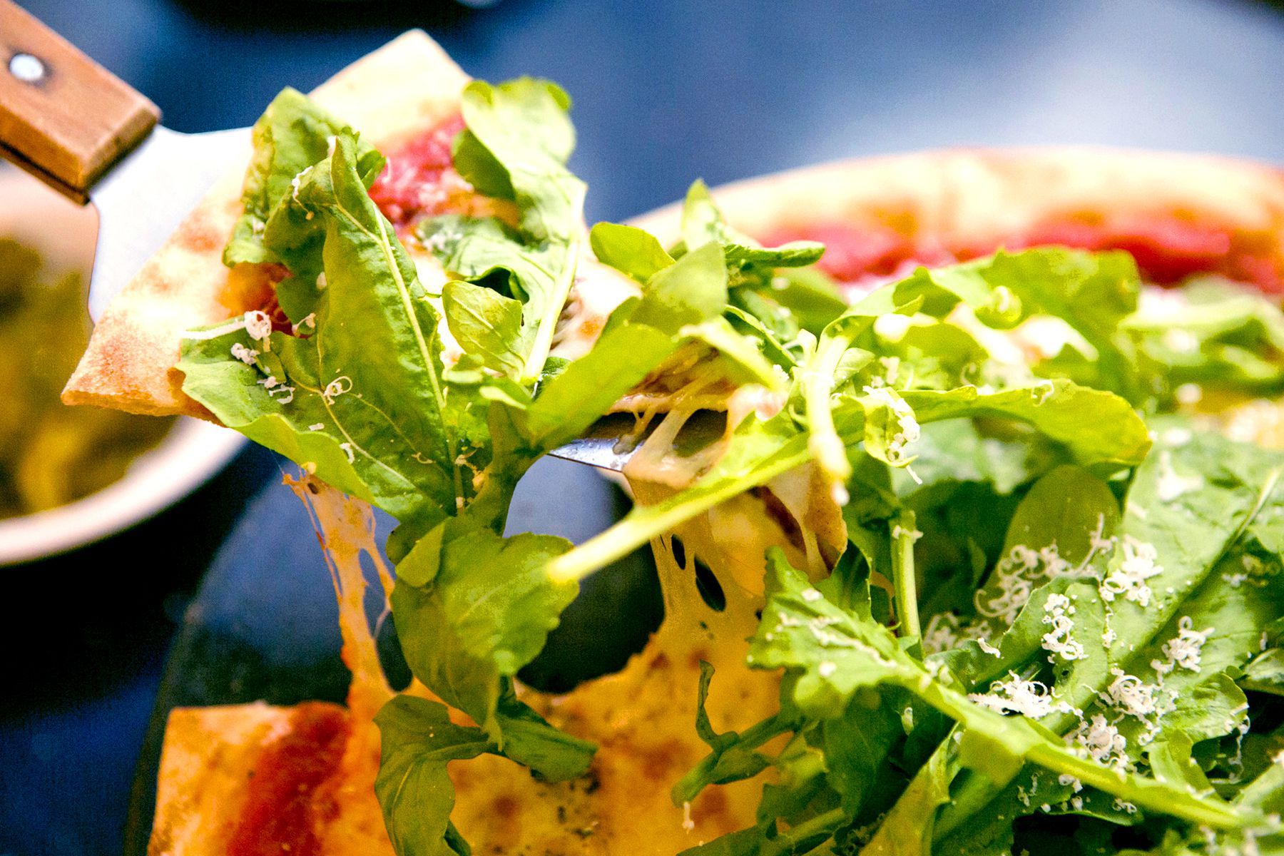 담백한 화덕피자에 향긋한 이탈리아 채소 루꼴라가 더해져 더욱 풍미를 느낄 수 있는 루꼴라피자