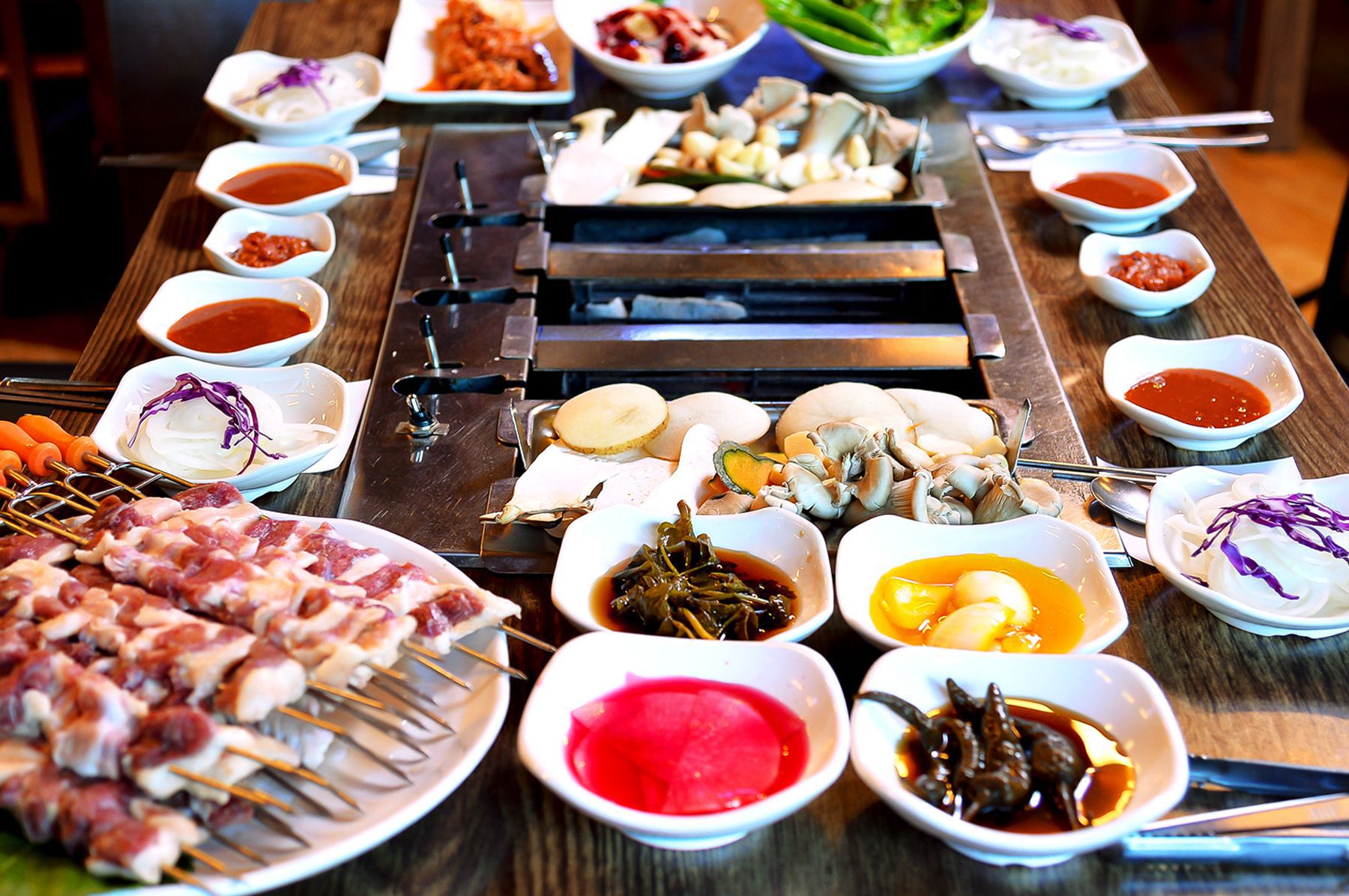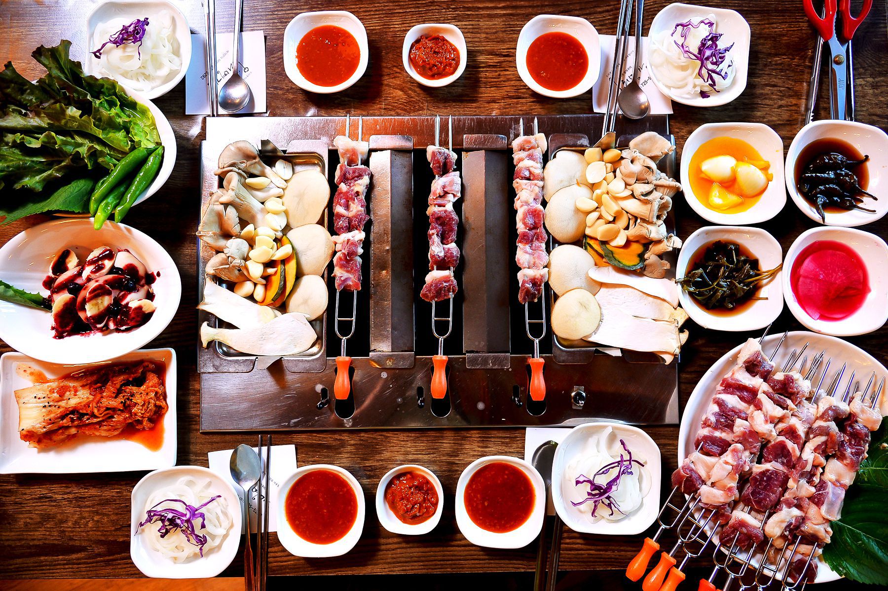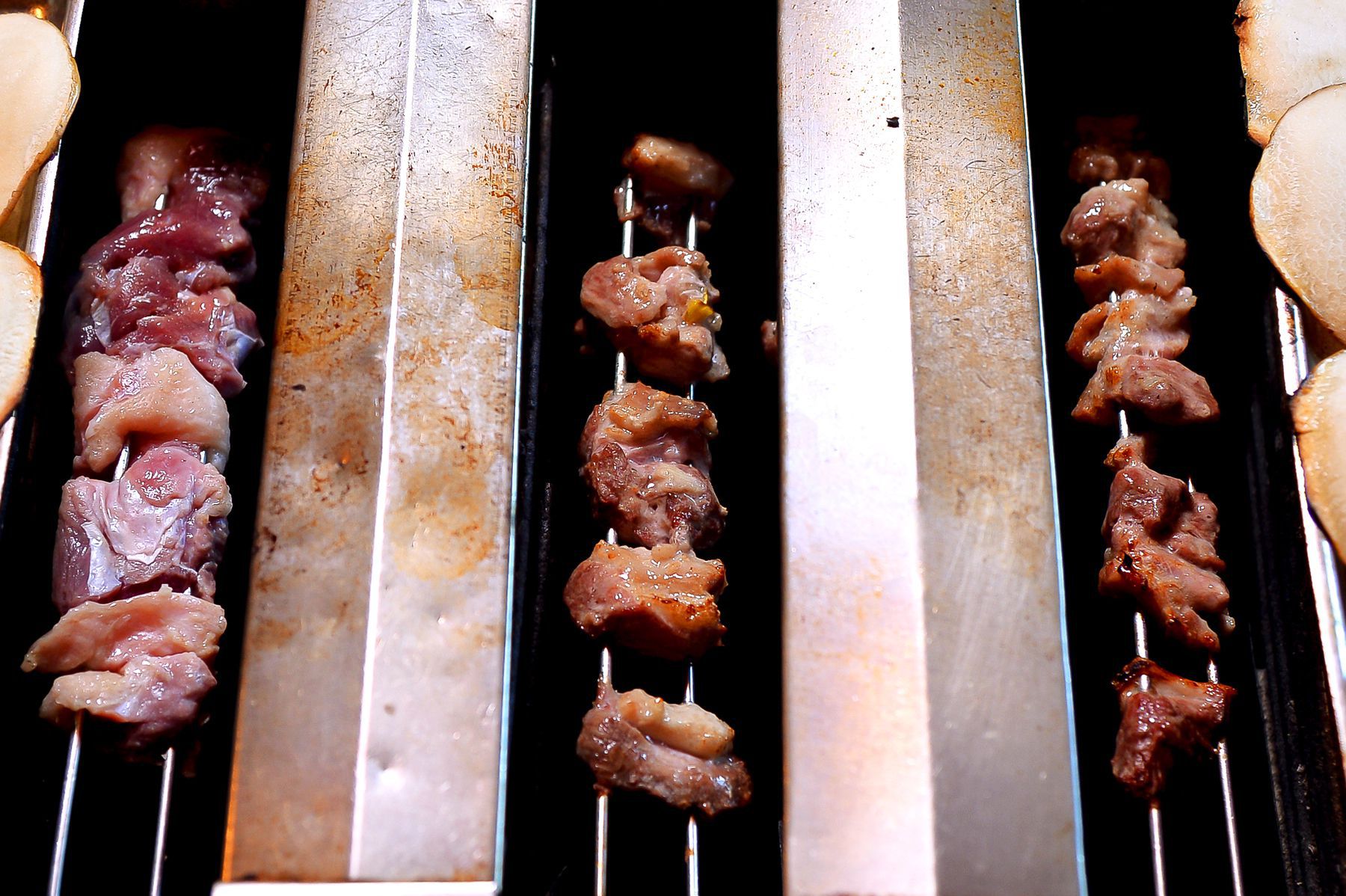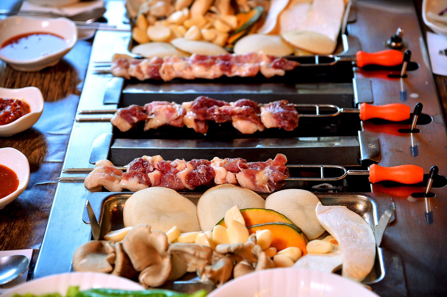 재미와 맛을 동시에 보장하는 회전식 숯불구이는 고기를 꼬지에 꽃아 숯에 구워먹는 요리입니다.