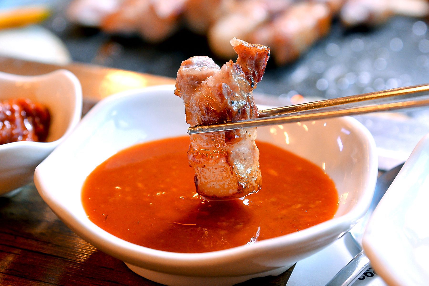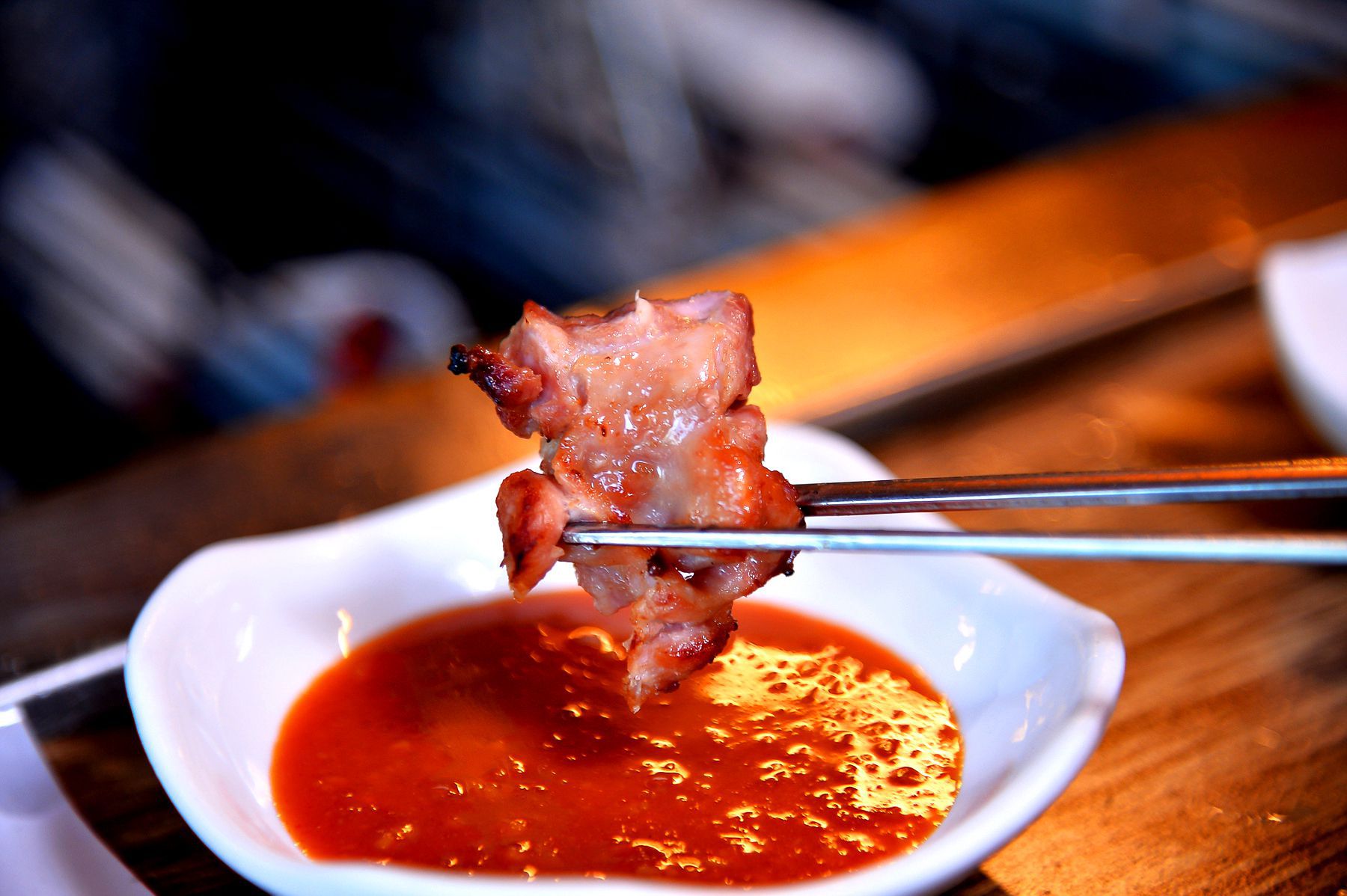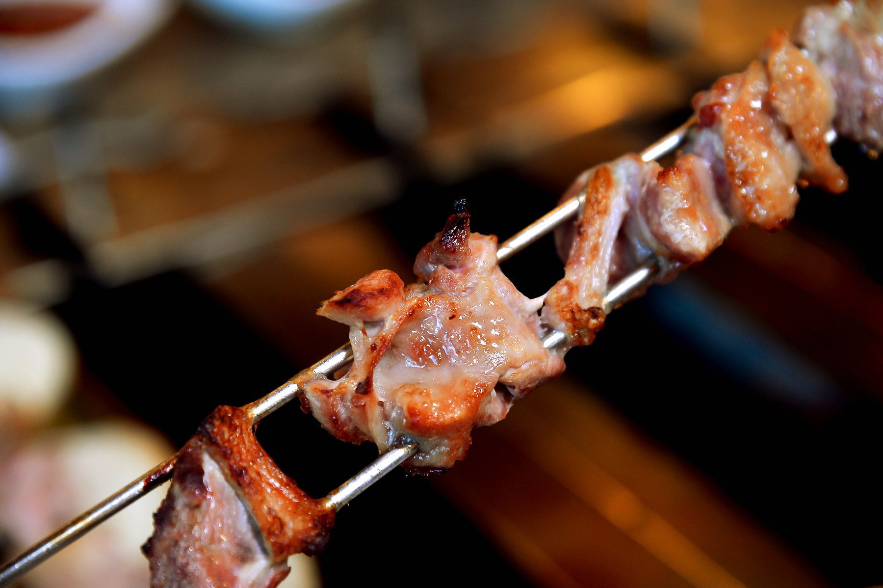 꼬치에 끼운 오리고기는 기름기가 빠져 담백하면서도 퍼석거리지 않고 쫄깃한 맛이 일품인데요~