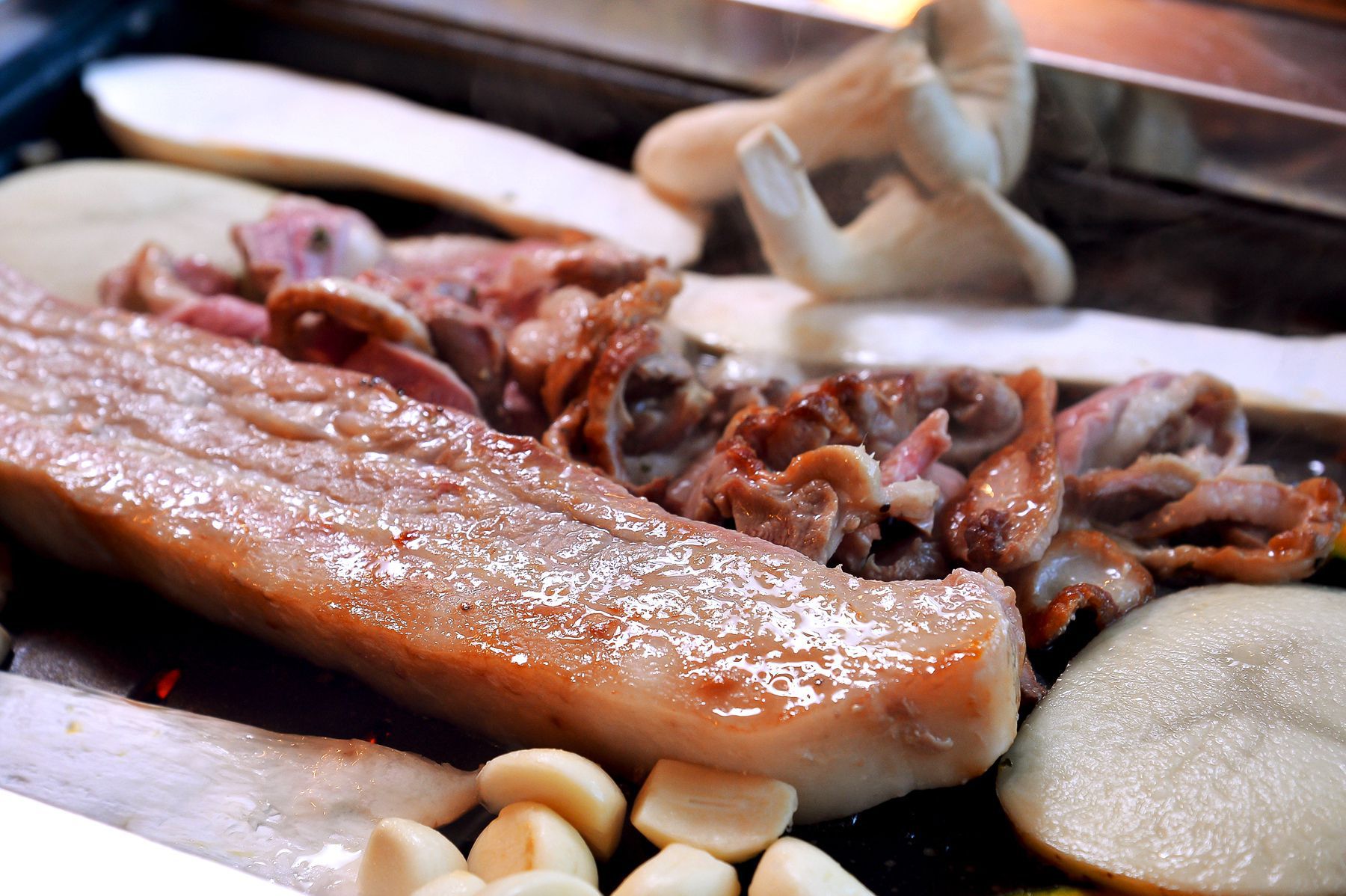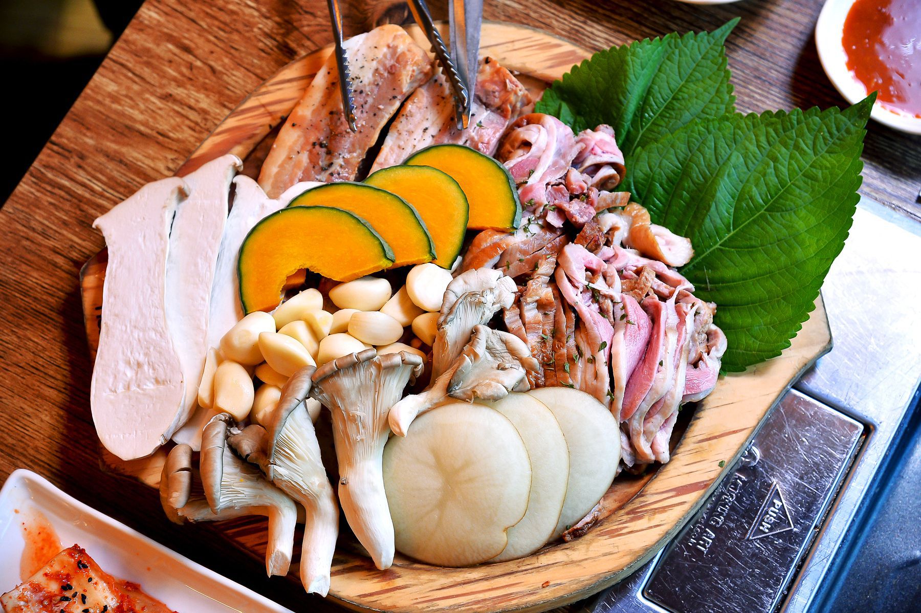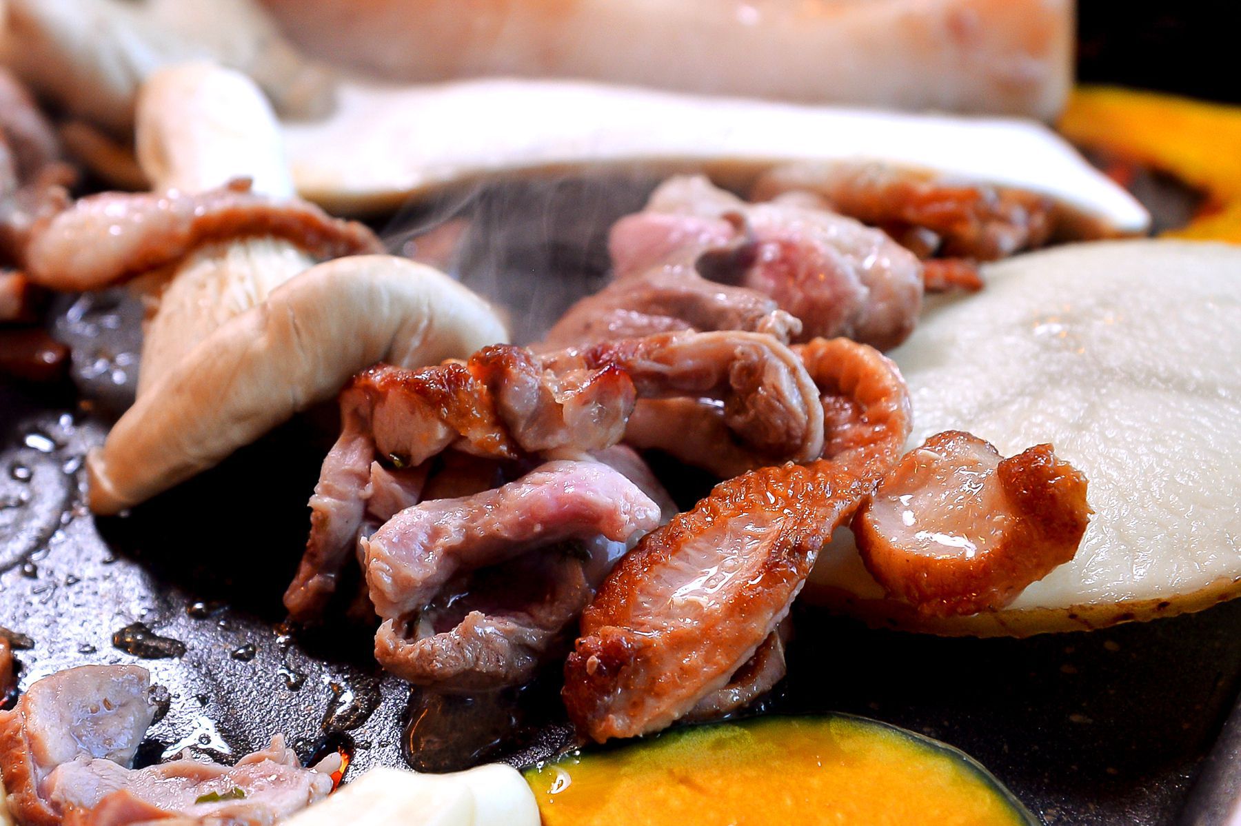 특히나 두툼하고 육질좋은 삼겹살과 기름기가 쫙 빠진 오리의 조화~