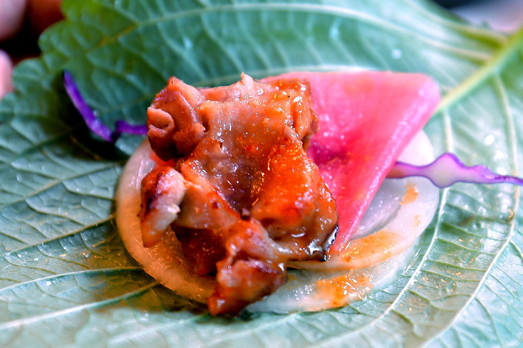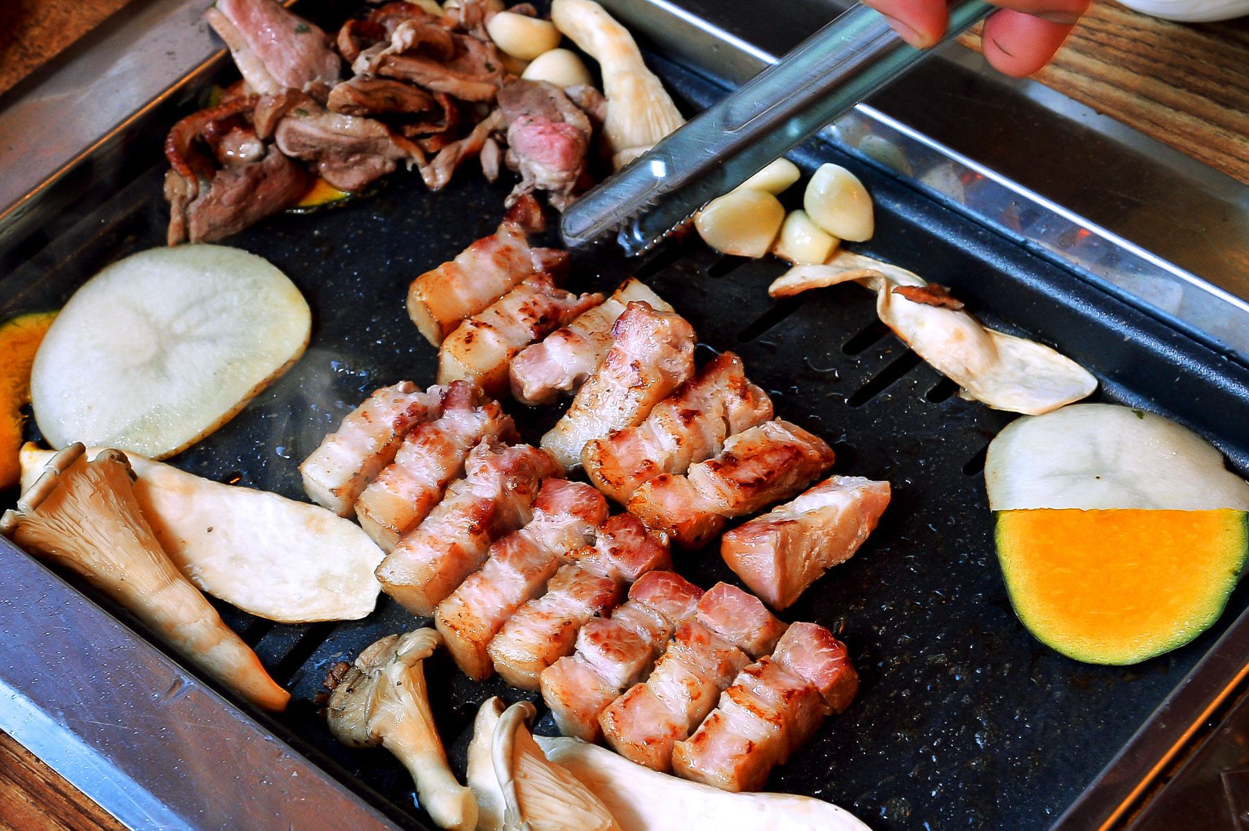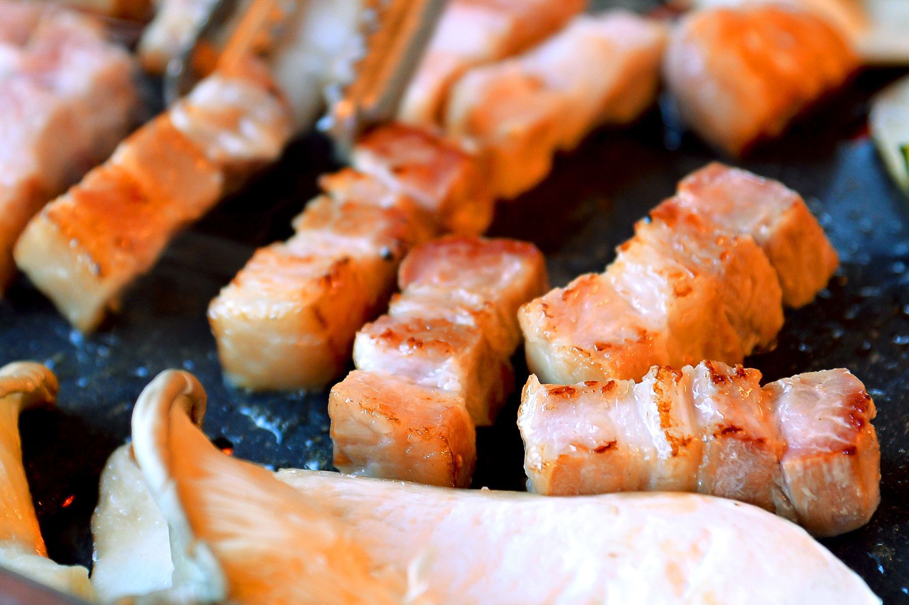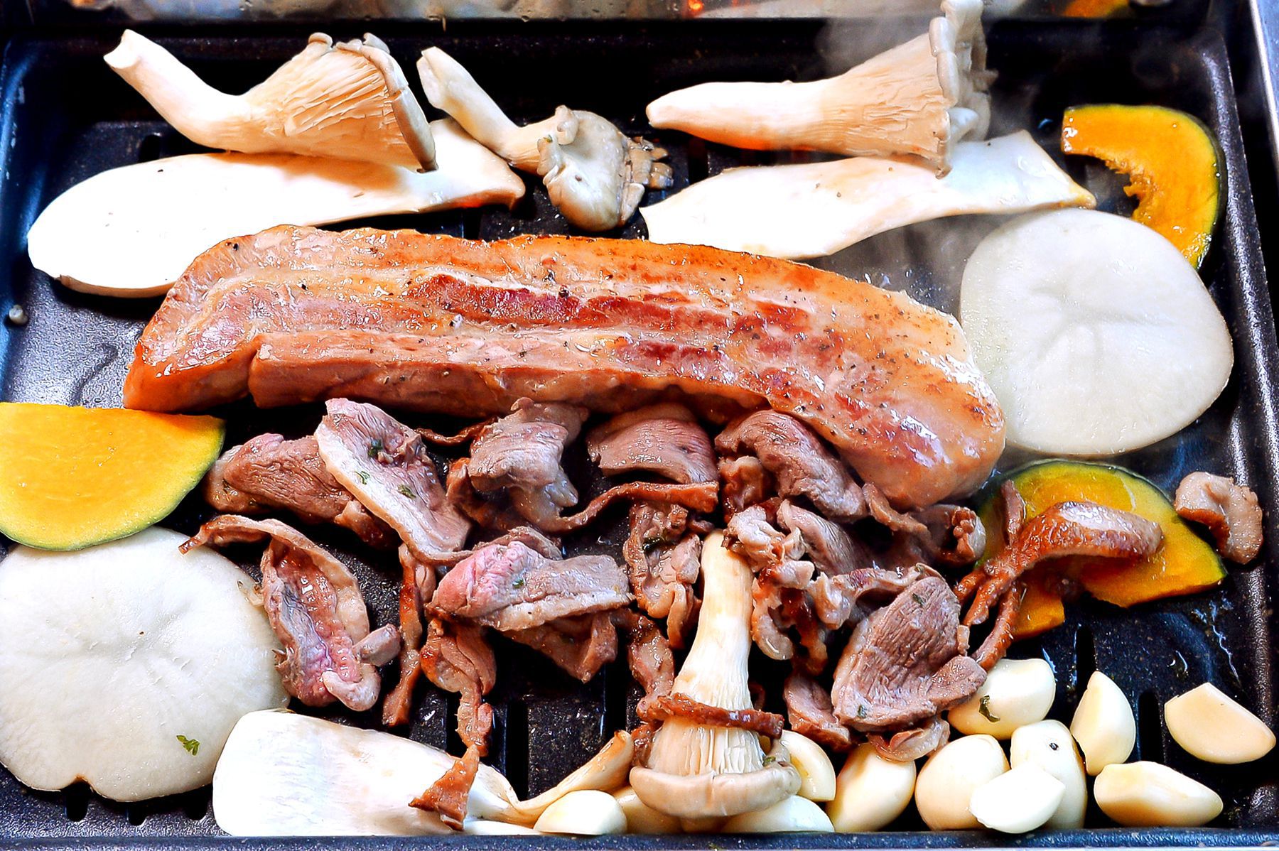 특히나 두툼하고 육질좋은 삼겹살과 기름기가 쫙 빠진 오리의 조화~
