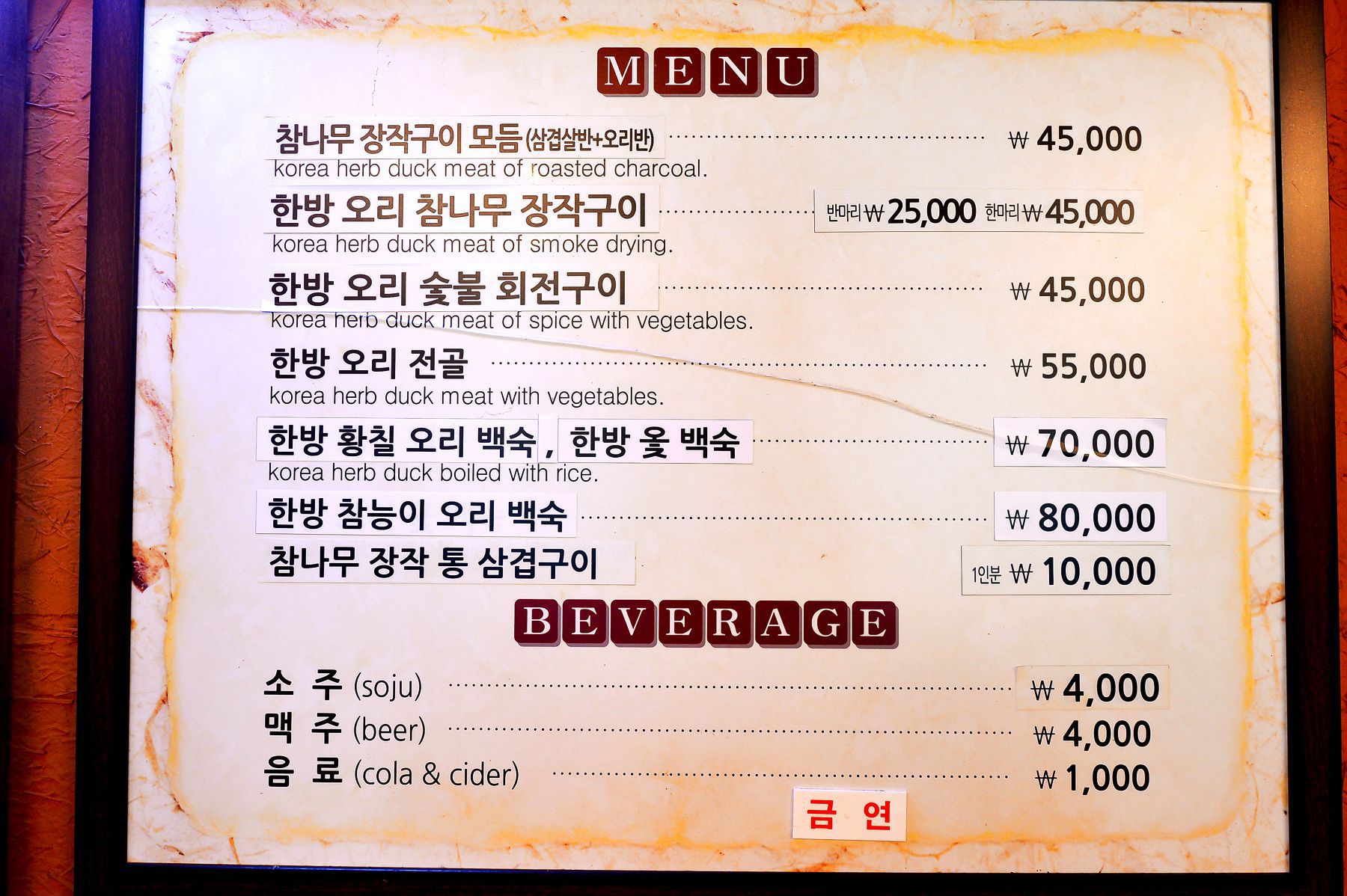이곳의 메인요리는 오리입니다~특히나 저칼로리이면서도 몸을 보해주는 효과가 뛰어나기때문에