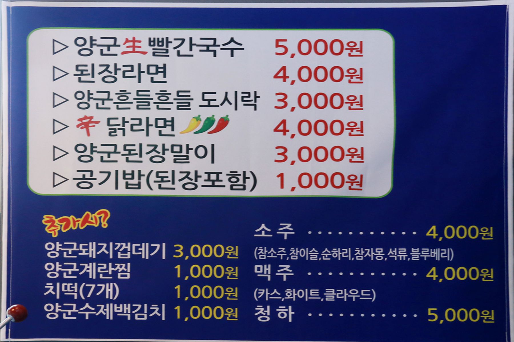 그 어느곳에서도 맛볼 수 없는 신닭라면과 된장라면은 또 다른 인기메뉴이고