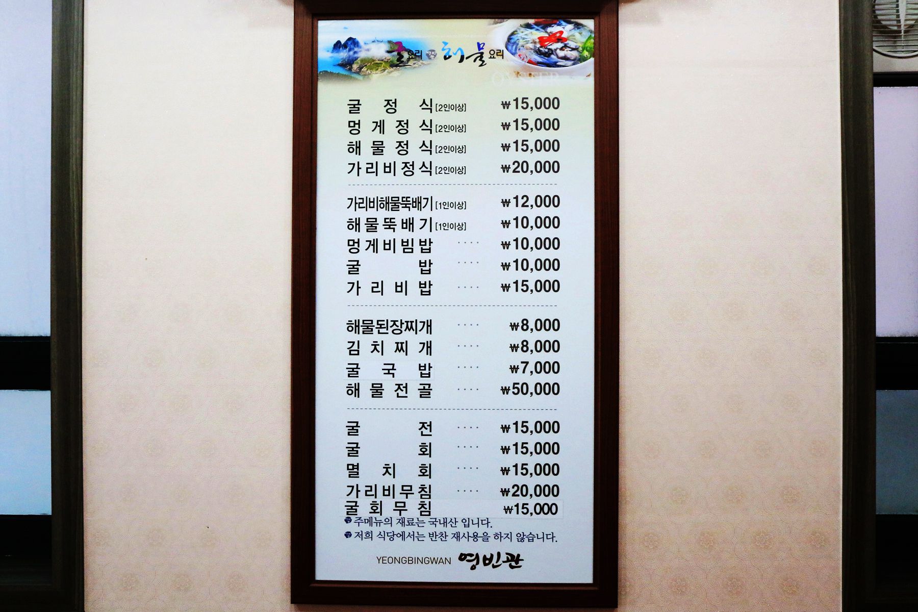 영빈관에서는 이렇게 건강에 좋은 재료를 사용하여 만든 생굴부터 굴전,굴구이,굴무침,굴국 등 다양한 코스요리를 맛볼수 있고