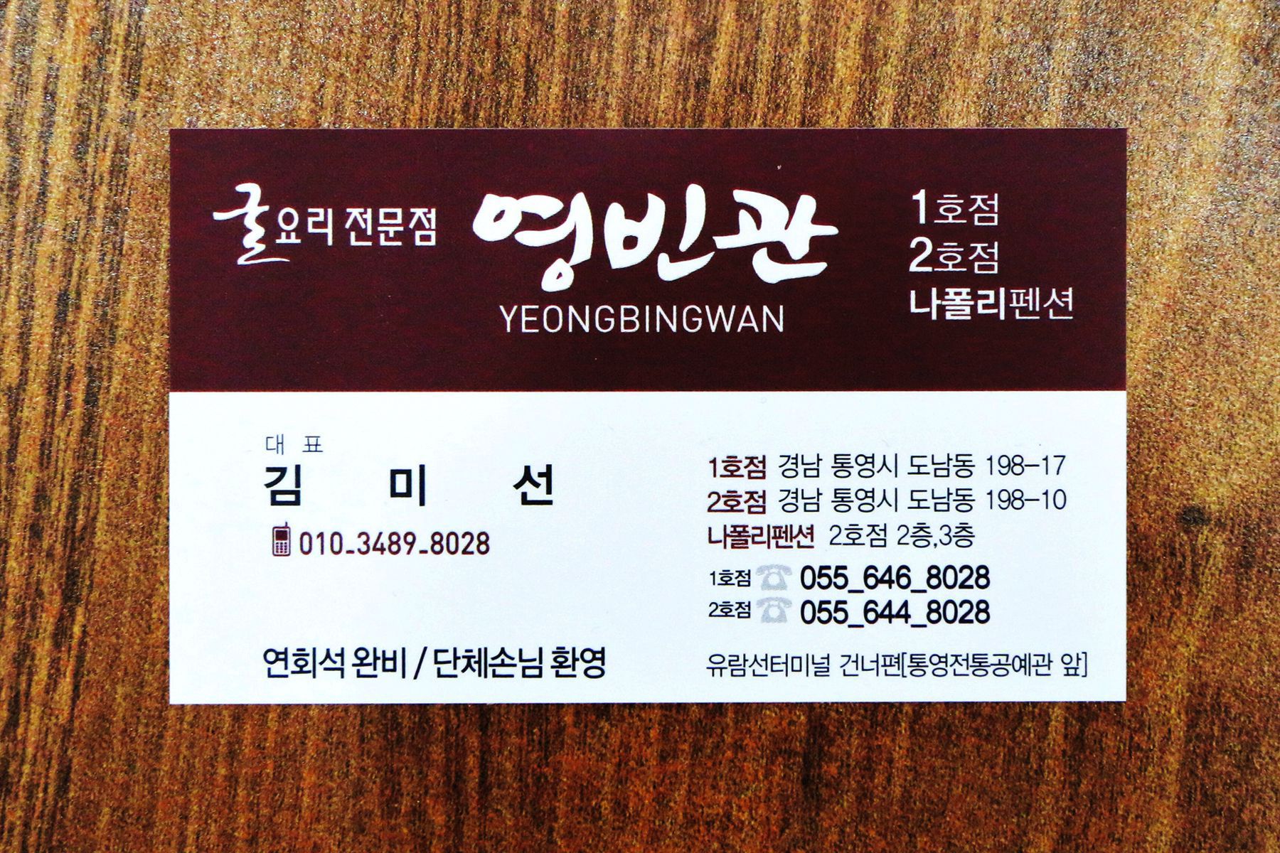 여러 방송에 소개되었고 2012년 통영음식 맛자랑대회 금상수상 굴요리전문점 '영빈관'