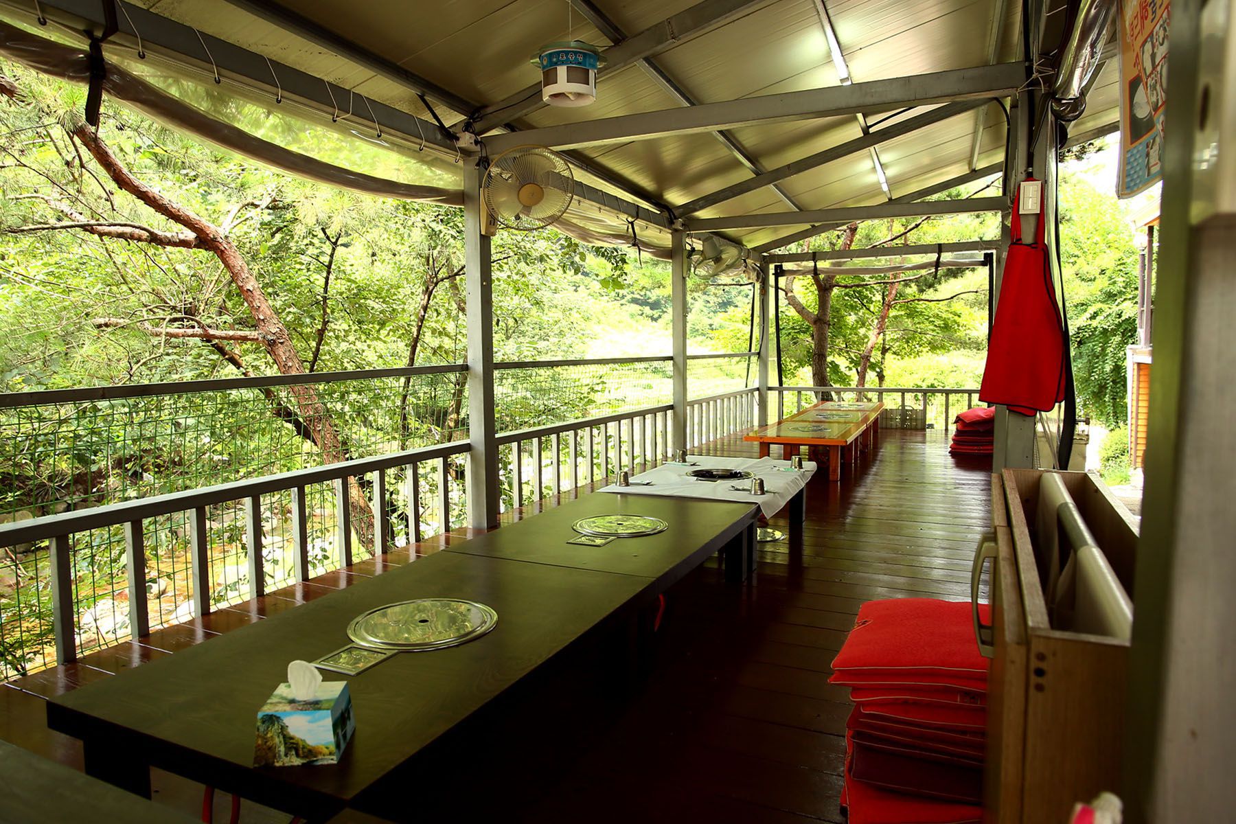 넓은 마당과 식당앞에 시원한 계곡이 흐르고 있어 경치를 즐기며 식사를 즐기시기에 최고의 장소입니다.
