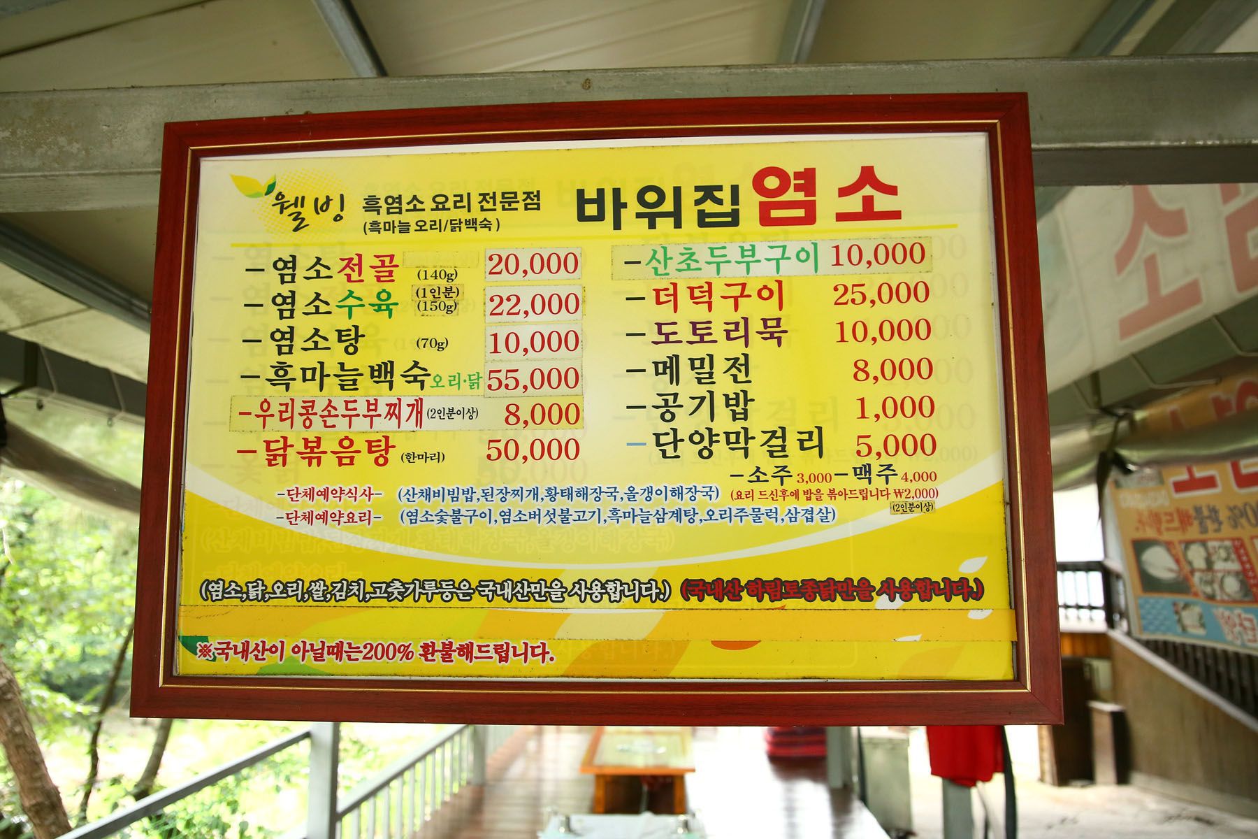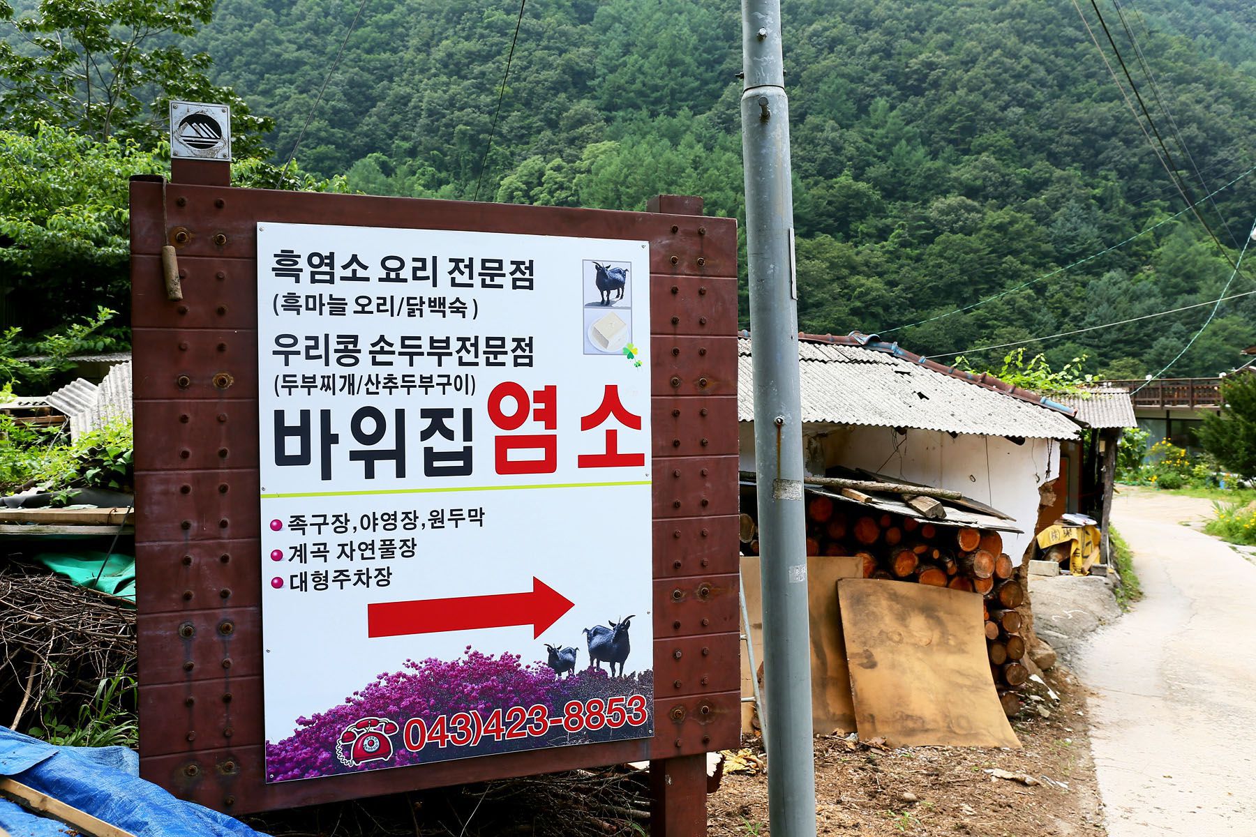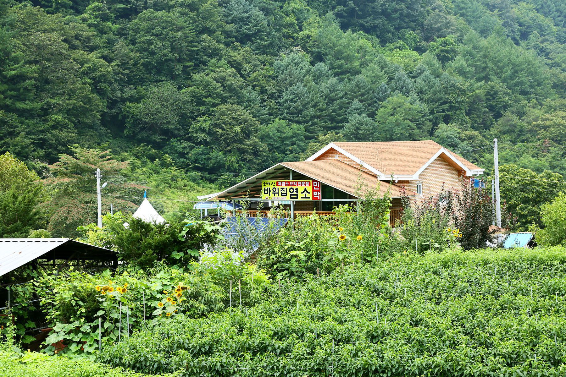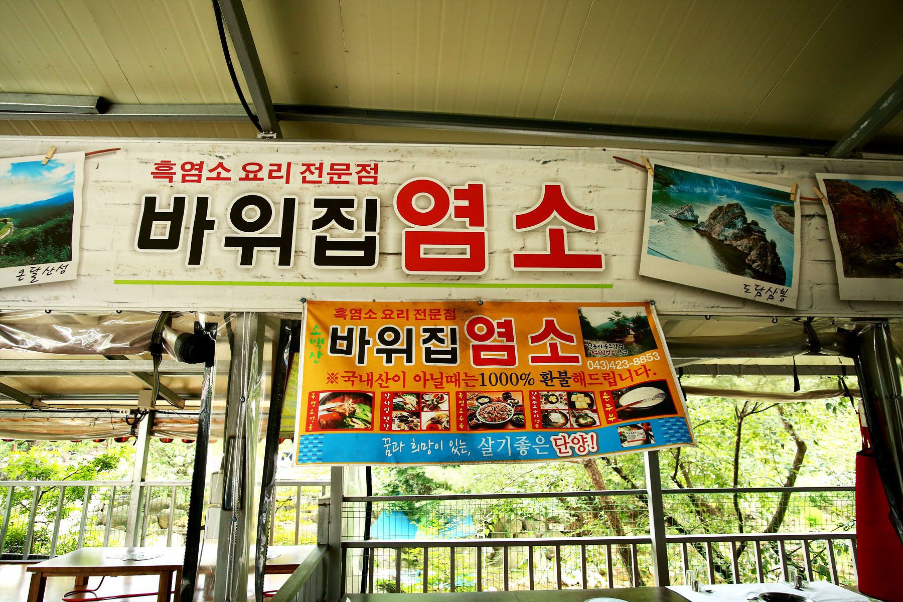 깊은 산과 맑은 계곡이 함께있는 아름다운 자연에서 경치를 즐기며 웰빙음식을 드실 수 있는 바위집염소!
