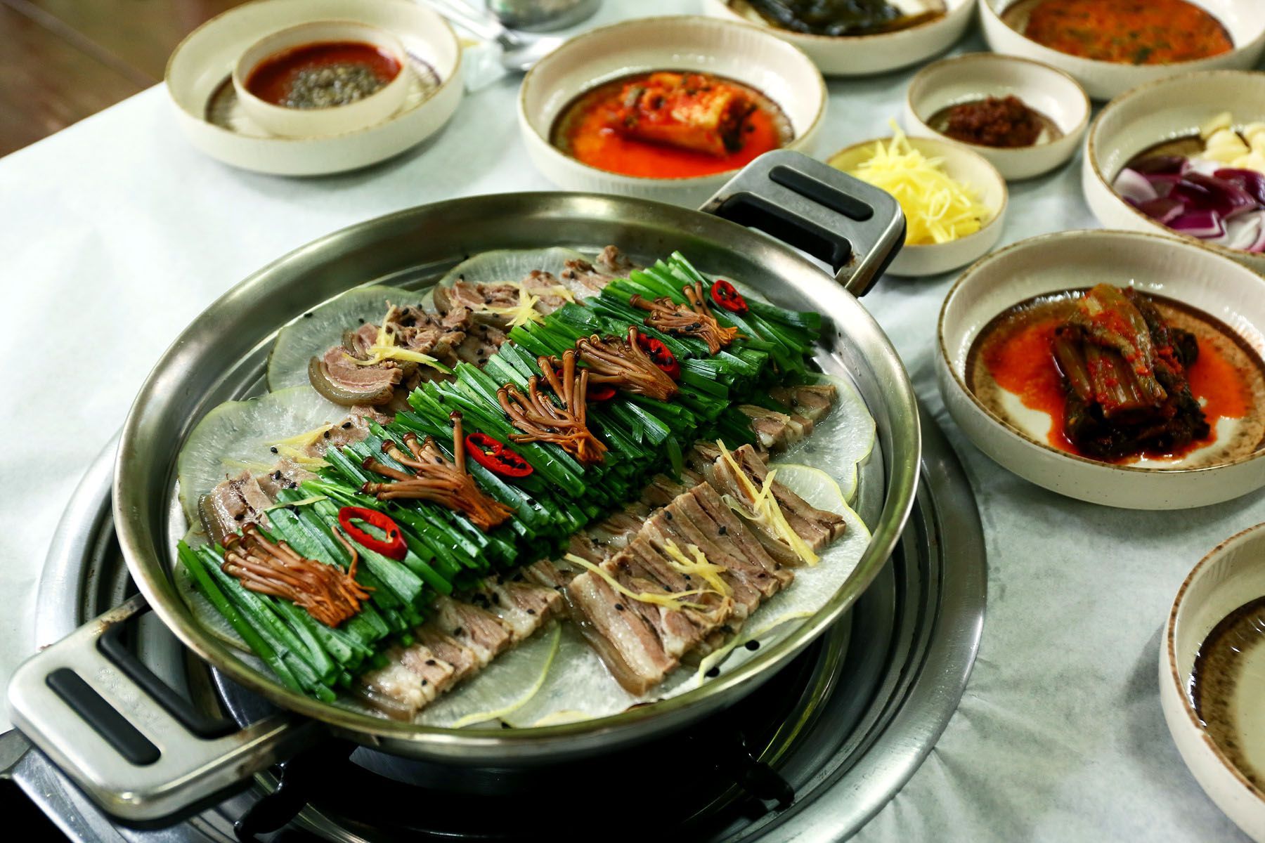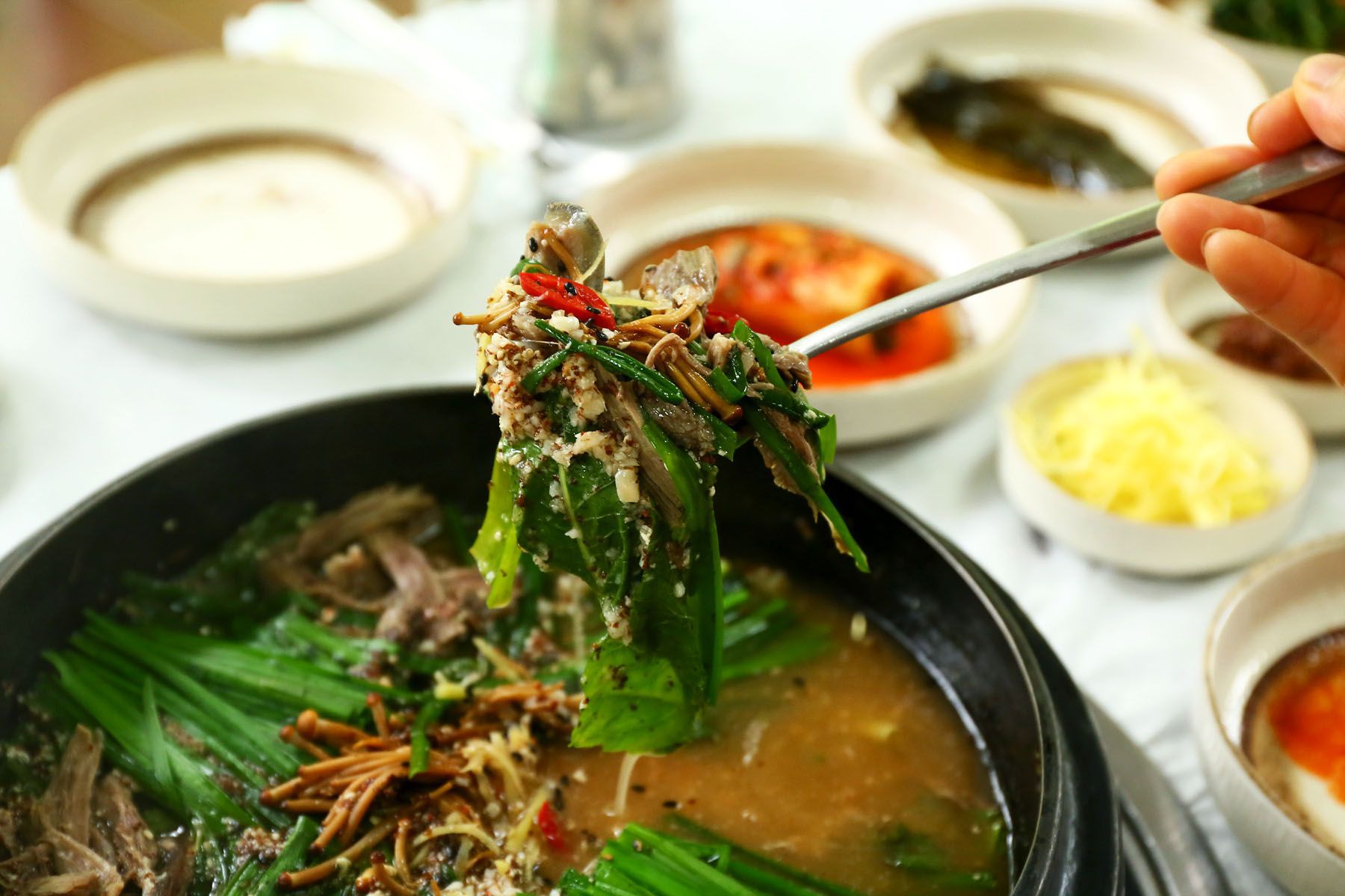 흑염소 요리와 잘 어울리는 깔끔한 반찬들만 엄선해서 제공해 요리의 맛을 더하고 있습니다.