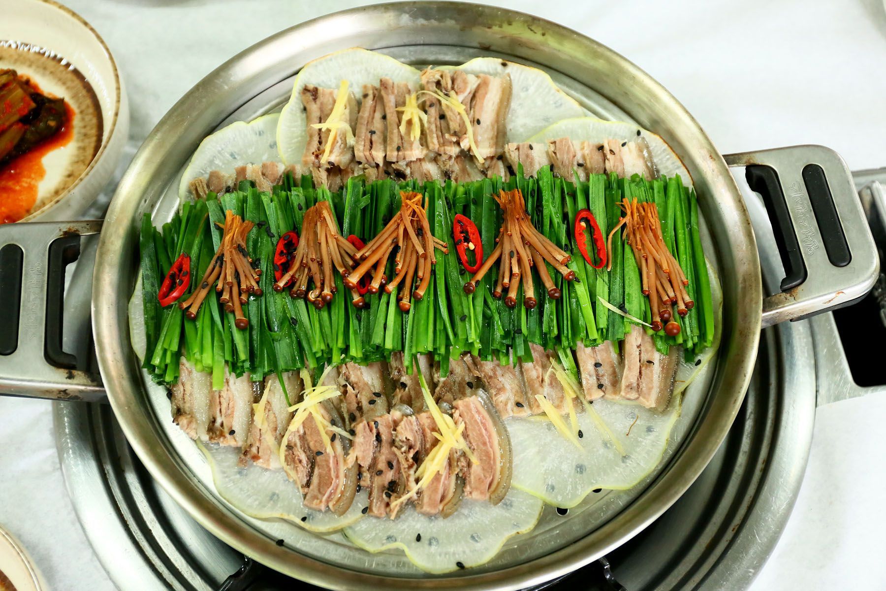 부드러운 수육을 야채와 함께 비법 양념장을 찍어 드셔보세요~^^